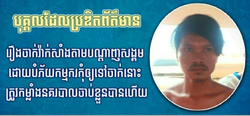 ភ្នំពេញៈ បុគ្គលដែលប្រឌិតព័ត៌មានរឿងចាក់វ៉ាក់សាំង ប្រឆាំងជំងឺកូវីដ-១៩របស់ចិន ហើយបង្ហោះចែកចាយនៅលើបណ្ដាញសង្គម TikTok ដើម្បីបំភិតបំភ័យដល់កម្មករ កុំឲ្យចាក់វ៉ាក់សាំងនោះ ត្រូវកម្លាំងនគរបាលស្រាវជ្រាវប្រឆាំងវិច្ចេកវិទ្យាចាប់ខ្លួនបានហើយ។
