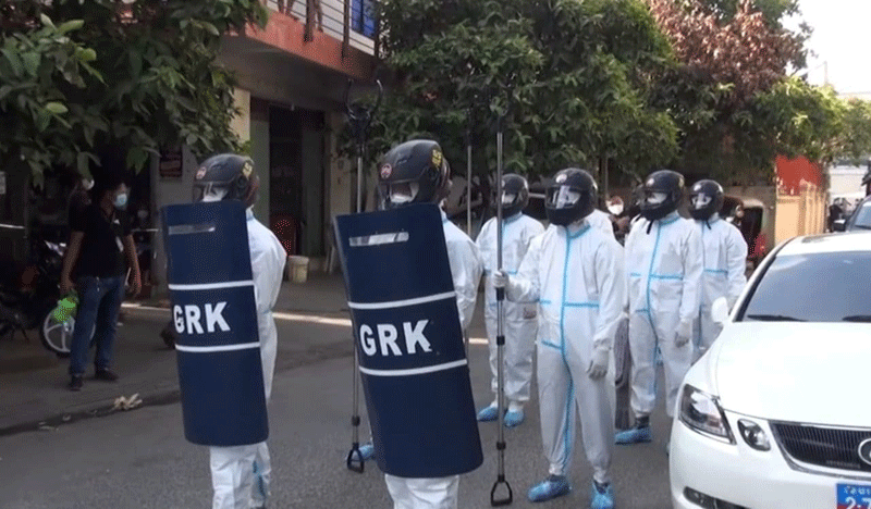 ដោយមានការស្នើសុំពីក្រុមគ្រូពេទ្យ និងមានការបញ្ជាផ្ទាល់ពីលោក ឃួង ស្រេង អភិបាលនៃគណៈ អភិបាលរាជធានីភ្នំពេញ កម្លាំងអន្តរាគមន៍របស់កងរាជអាវុធហត្ថរាជធានីភ្នំពេញ ដែលត្រៀម ប្រចាំការ នៅសាលារាជធានីភ្នំពេញ បានចេញសហការ ជាមួយគណៈបញ្ជាការឯកភាពរដ្ឋបាល ខណ្ឌមានជ័យ និង ក្រុមគ្រូពេទ្យក្រសួងសុខាភិបាល ចុះទៅដល់ទីតាំងខុនដូផ្ទាល់ និងបានបង្ខំឲ្យ បុរសជនជាតិបរទេសម្នាក់នោះ យល់ព្រមឡើងរថយន្ត សាម៉ុយ ជាមួយក្រុមគ្រូពេទ្យ ទៅកាន់មណ្ឌល សុខភាពចាក់អង្រែក្រោម ដើម្បីយកសំណាកពិនិត្យរកកូវិដ១៩ផងដែរ៕SKS