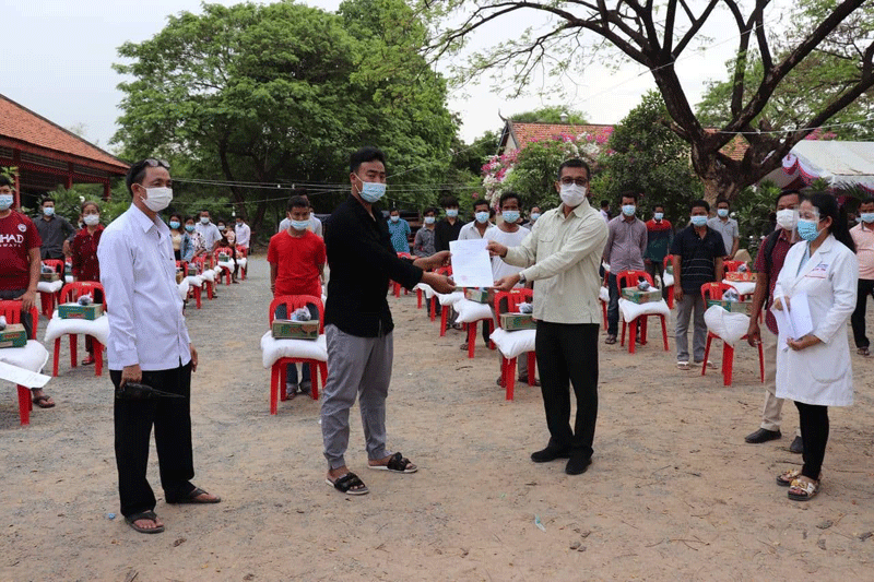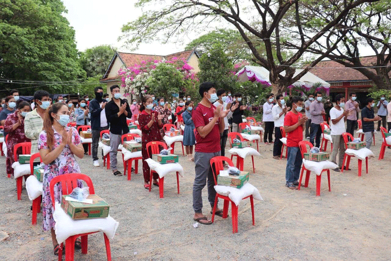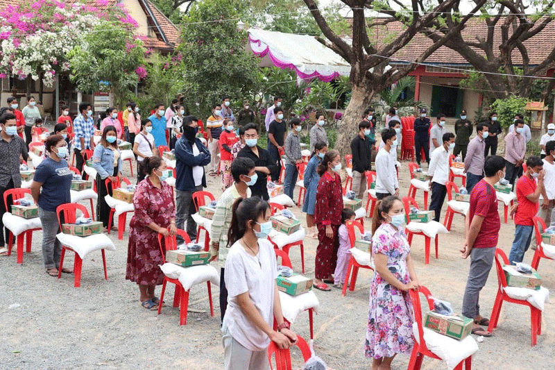 ក្នុងឱកាសនោះដែរ លោកអភិបាលស្រុកអង្គស្នួល បានធ្វើការផ្សព្វផ្សាយ អំពីវិធានការការពារ ជំងឺកូវីដ-១៩ របស់ក្រសួងសុខាភិបាល ជូនប្រជាពលរដ្ឋទាំង ៦៣នាក់ ពិសេសវិធានការ ការពារជំងឺកូវីដ-១៩ របស់ប្រមុខរាជរដ្ឋាភិបាល សម្ដេចតេជោ គឺ ៣ការពារ ៣កុំ។ លោកអភិបាលស្រុកអង្គស្នួល ក៏បានសំណូមពរដល់បងប្អូនប្រជាពរដ្ឋ នៅពេលត្រឡប់ទៅលំនៅឋានវិញ សូមបន្តផ្សព្វផ្សាយវិធានការទាំងនេះ ជូនប្រជាពលរដ្ឋនៅមូលដ្ឋានរបស់ខ្លួន សំដៅរួមគ្នា បង្ការ ការពារ ទប់ស្កាត់ ការឆ្លងរាលដាលជំងឺកូវីដ១៩ និងឈានដល់ការបញ្ចប់នូវព្រឹត្តិការណ៍សហគមន៍ ២០ កុម្ភៈផងដែរ។ក្នុងនោះដែរ លោកអភិបាលស្រុក បានឧបត្ថម្ភដល់ប្រជាពលរដ្ឋទាំង ៦៣នាក់ ក្នុង១នាក់ទទួលបាន :អង្ករ២៥ គីគីឡូក្រា មី ១កេសតូច ម៉ាសក្រណាត់ ៥ម៉ាស អាល់កុល១ដបតូច និងថវិកា ៥មុឺនរៀល ជាថវិការបស់រដ្ឋបាលខេត្ត។ជឿន ភាវុន