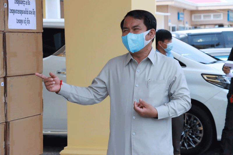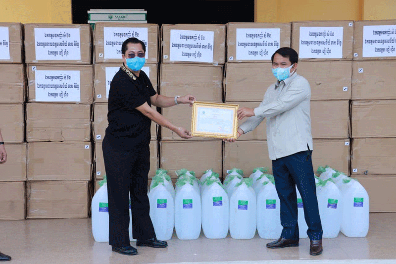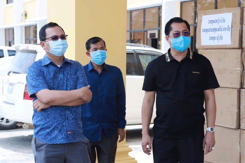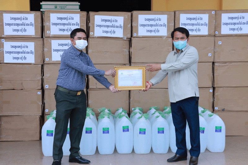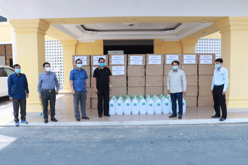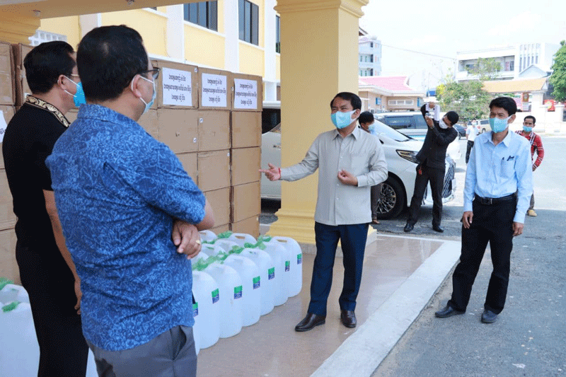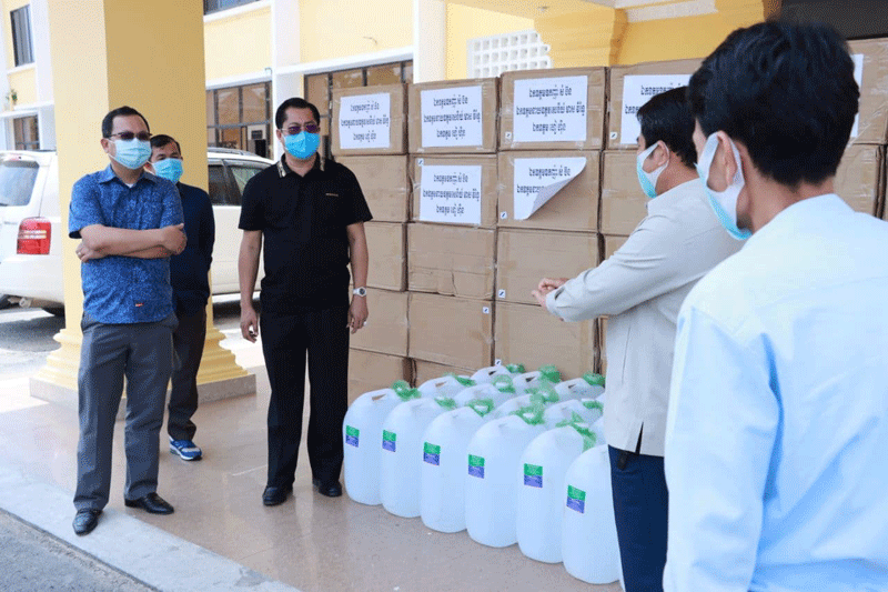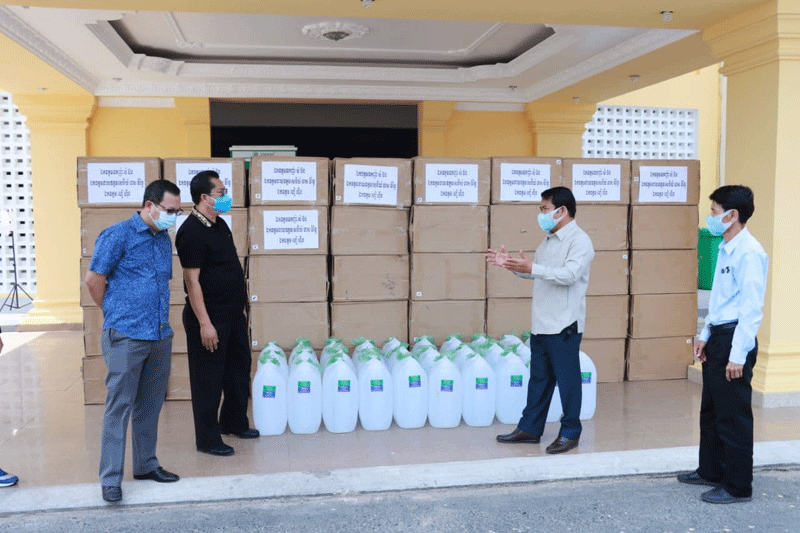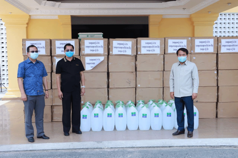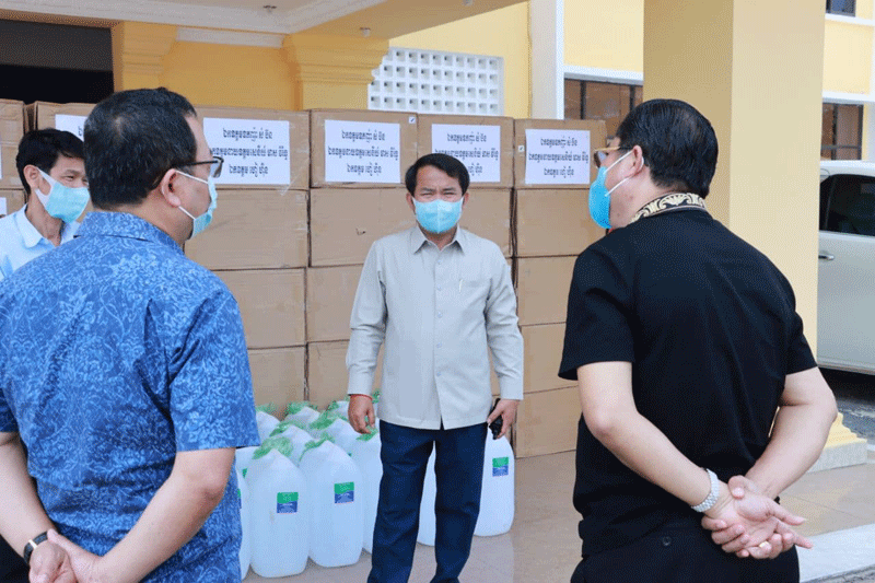 ខេត្តកណ្ដាល៖ ឧកញ៉ា សំ ប៊ន និងឯកឧត្ដម ហៀ ហ៊ីន បានឧបត្ថម្ភសម្ភារៈ មានអាល់កុល៣០កាន ស្មើនឹង៩០០លីត្រ និងម៉ាស ១០ម៉ឺនម៉ាស សម្រាប់ប្រយុទ្ធប្រឆាំងជំងឺកូវីដ-១៩ ជូនដល់រដ្ឋបាលខេត្តកណ្ដាល។ ព្រឹកថ្ងៃទី២៦ ខែមិនា ឆ្នាំ២០២១ ឯកឧត្តម គង់ សោភ័ណ្ឌ អភិបាលខេត្តកណ្ដាល អនុញ្ញាតឱ្យ ឧកញ៉ា សំ ប៊ន និងឯកឧត្ដម ហៀ ហ៊ីន ចូលជួបសំណេះសំណាល និងនាំយកនូវ សម្ភារៈ មួយចំនួន ជូនដល់រដ្ឋបាលខេត្តកណ្ដាល សម្រាប់ប្រយុទ្ធប្រឆាំង ក្នុងការឆ្លងរាលដាលនូវជំងឺកូវីដ-១៩ ក្នុងភូមិសាស្ត្រខេត្តកណ្ដាល។
