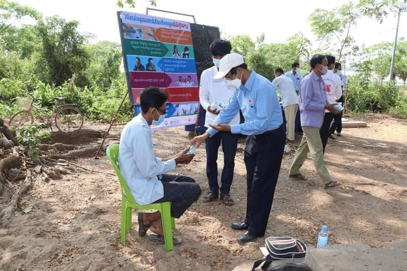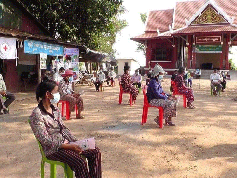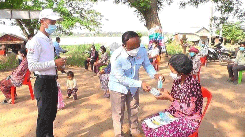 ខេត្តកំពង់ឆ្នាំងៈប្រធានគណះកម្មាធិការសាខាកាកបាទក្រហមកម្ពុជាខេត្តកំពង់ឆ្នាំងលោក អម សុភា និង សហការី បន្តចុះធ្វើការផ្សព្វផ្សាយអប់រុំបង្ការទប់ស្កាត់ការរីករាលដាលជំងឺកូវីដ១៩ ដល់ប្រជាពលរដ្ឋនៅ ឃុំពាមឆ្កោក ស្រុកជលគីរី ខេត្តកំពង់ឆ្នាំង នៅថ្ងៃទី២៦មីនា២០២១។
