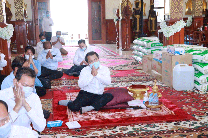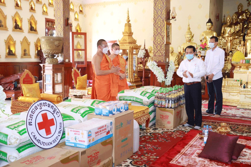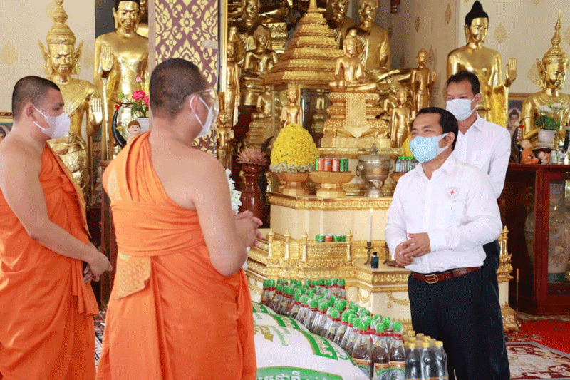 ឯកឧត្ដម បានបន្តថា ចំពោះវិស័យព្រះពុទ្ធសាសនា ក៏បានរងផលលំបាកនៃជំងឺកូវីដ-១៩នេះ ផងដែរ ដូច្នេះក្នុងនាមអជ្ញាធរខេត្តក៏ដូចជាគណកម្មាធិការកាបាទក្រហមកម្ពូជាខេត្តឯកឧត្ដម តែងតែគិតគួរ ពីសុខទុក្ខរបស់ប្រជាពលរដ្ឋ ព្រមទាំងព្រះសង្ឃ ក្នុងការជួយឧបត្ថម្ភសំភារៈ និងគ្រឿងឧបភោគ បរិភោគ ជូនដល់ប្រជាពលរដ្ឋ និងព្រះសង្ឃ ដើម្បីសម្រួលដល់ជីវភាពប្រចាំថ្ងៃ ។