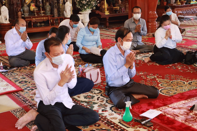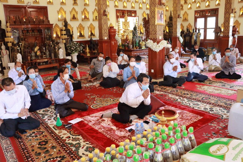 ឯកឧត្តម ក៏បានអំពាវនាវដល់ព្រះសង្ឃ គណ:កម្មការអាចារ្យវត្ត និងពុទ្ធបរិស័ទប្រជាពលរដ្ឋ សូមចូល រួមអនុវត្តន៍តាមបទបញ្ជារបស់រាជរដ្ឋាភិបាល ៣កុំ និង៣ការពារ សំដៅចូលរួមជាមួយគ្នាក្នុងការ ទប់ស្កាត់នៃការរីករាលដាលនៃជំងឺកូវីដ១៩។ ឯកឧត្តមអភិបាលខេត្ត បានទូលប្រគេនចៅអធិការវត្ត ក៏ដូចជាគណៈកម្មាការវត្ត ត្រូវអនុវត្តអោយបានជាប្រចាំនូវសារ របស់សម្តេចនាយករដ្ឋមន្ត្រី ដែលតំរូវអោយគ្រប់វត្តអារ៉ាមទាំងអស់ទូងស្គរ តាមការកំនត់ពេល ម៉ោង ដើម្បីជួយរំលឹកដល់ ប្រជាពលរដ្ឋអោយអនុវត្តតាមអនុសាសន៏របស់សម្តេច គឺ ៣កុំ ៣ការពារ សំដៅទបើស្កាត់ការរីករាលដាលជម្ងឺកូវីដ១៩។