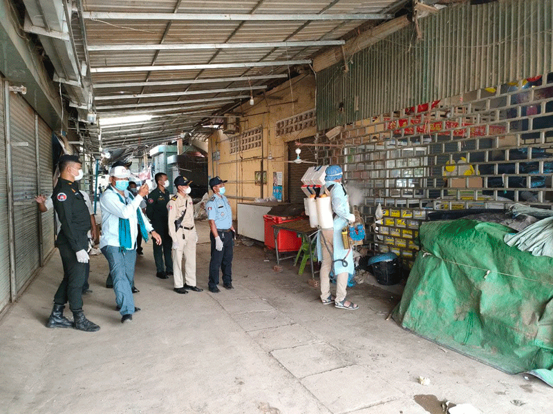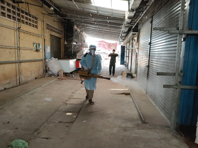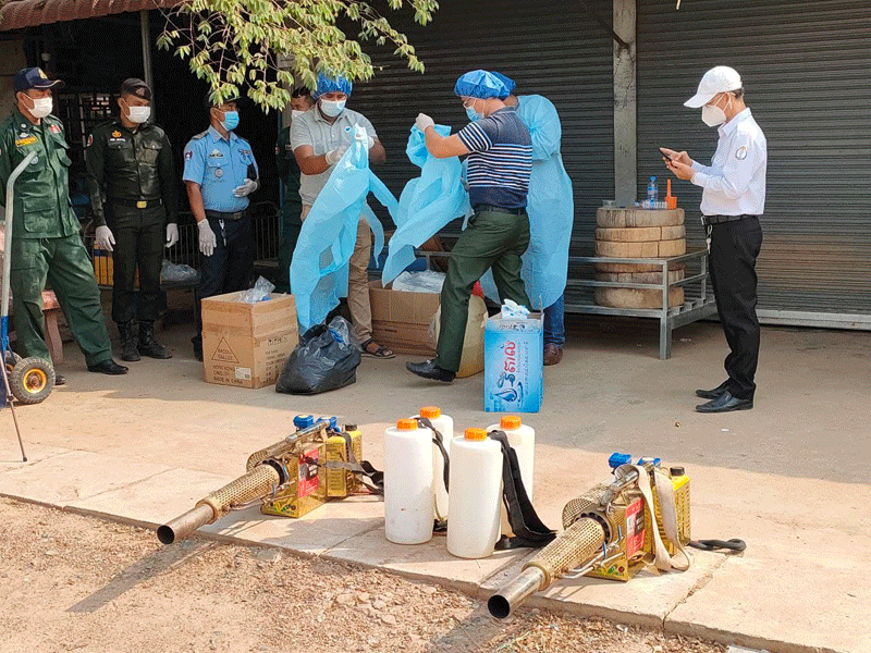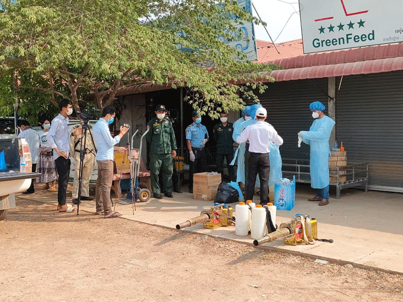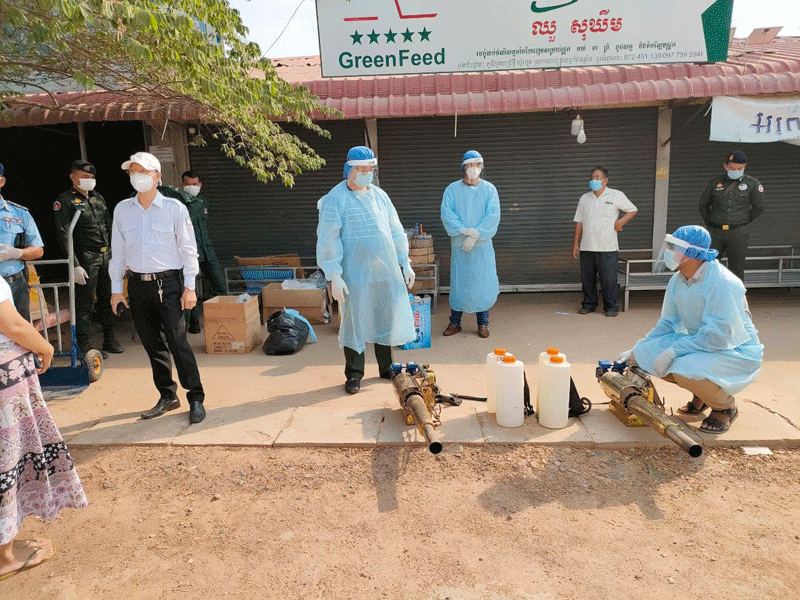 ខេត្តកំពង់ឆ្នាំង:មន្ទីសុខាភិបាលខេត្តកំពង់ឆ្នាំងបានចុះធ្វើការបាញ់ថ្នាំសម្លាប់មេរោគនៅជុំវិញបរិវេណផ្សារពង្រស្រុករលាប្អៀរក្រោយពីមានបាតុភាពជម្ងឺកូវិដ១៩ត្រូវបានផ្អាកការលក់ដូបណ្តោះអាសន្នគ្រាដែលមានមនុស្ស២នាក់ប្តីប្រពន្ធប៉ះពាល់ដោយ ផ្ទាល់ និងប្រយោលនៅរសៀលថ្ងៃទី ២៦ ខែមីនា ឆ្នាំ ២០២១នេះមន្ត្រីនៃមន្ទីរសុខាភិបាលខេត្តកំពង់ឆ្នាំង បានសហការ ជាមួយអាជ្ញាធរភូមិឃុំរួមទាំងសមត្ថកិច្ចមូលដ្ឋានបានចុះធ្វើការបាញ់ថ្នាំសម្លាប់មេរោគជុំវិញផ្សារពង្រ ស្ថិតក្នុងភូមិប្រាំបីឆោមឃុំពង្រស្រុករលាប្អៀរខេត្តកំពង់ឆ្នាំង ។ ប្រធានការិយាល័យ បង្ការ និងគ្រប់គ្រង ជំងឺឆ្លងនៃមន្ទីរសុខាភិបាលខេត្តកំពង់ឆ្នាំងលោកវិជ្ជបណ្ឌិត គង់ចាន់ធា បានអោយដឹងនៅរសៀល ថ្ងៃនេះថា ក្រោយពីមានព្រឹត្តិការណ៍២នាក់ប្តីប្រពន្ធមកពីរាជធានីភ្នំពេញ មកដល់ខេត្តកំពង់ឆ្នាំងមាន ការប៉ះពាល់ដល់ប្រយោលនិងប៉ះពាល់ដោយផ្ទាល់រវាងក្រុមអ្នកលក់ដូរក្នុងផ្សារទើបអាជ្ញាធរខេត្តកំពង់ឆ្នាំងសម្រេចបិទការលក់ដូរផ្សារជាបណ្ដោះអាសន្នក្រោយពីការបិទបានប៉ុន្មានថ្ងៃថ្ងៃនេះឯកឧត្តមអភិបាលខេត្តក៏បានស្នើដល់មន្ត្រីនៃមន្ទីរសុខាភិបាលខេត្តកំពង់ឆ្នាំងចុះធ្វើការបាញ់ថ្នាំសម្លាប់មេរោគជុំវិញបរិវេណផ្សារនេះផងដែរ ។មេឃុំពង្រស្រុករលាប្អៀរលោក ខែកសុផល បានមានប្រសាសន៍ថា ក្រោយពីមានផ្ទុះបាតុភាពនៃជំងឺកូវីដ១៩ នោះមកផ្សារពង្រត្រូវបានបិទចាប់ពីថ្ងៃទី ២៤ខែមីនាមកដល់ ពេលនេះមានរយៈពេល៤ថ្ងៃមកហើយ ។ មេឃុំពង្របានបញ្ជាក់ថាផ្សារពង្រកាលពីបីមុន ពុំមាន អាជីវករចេញ ចូលនោះទេលើកលែងតែមានផ្ទះអ្នកមានផ្ទះល្វែងនៅក្នុង និងចេញចូលបន្តិច បន្តួចតែប៉ុណ្ណោះដោយសភាពការណ៍ស្ងប់ស្ងាត់និងមានការព័ទ្ធខ្សែផងដែរ ។