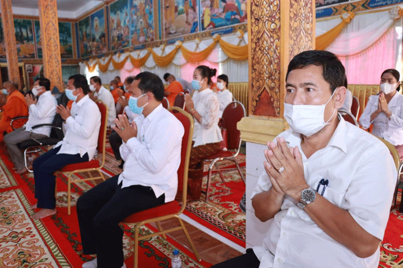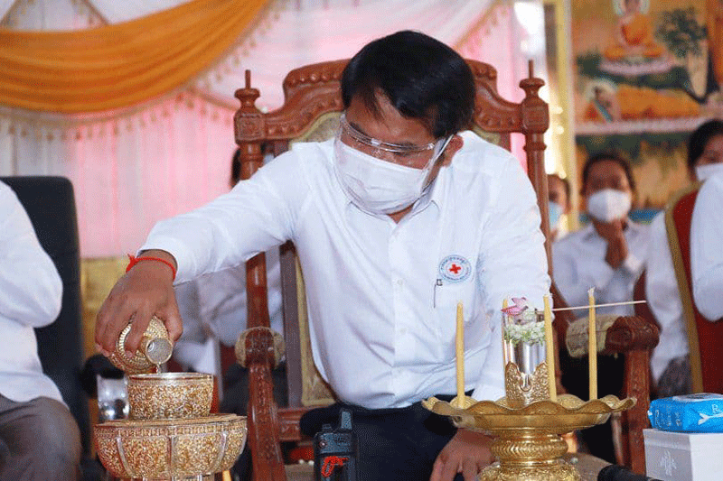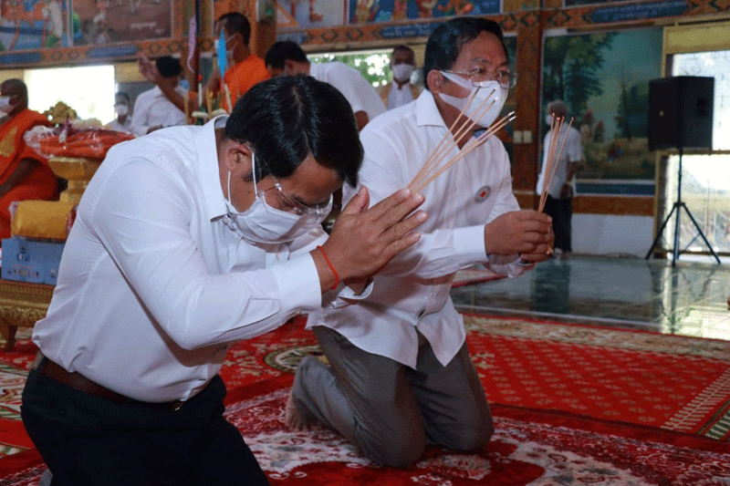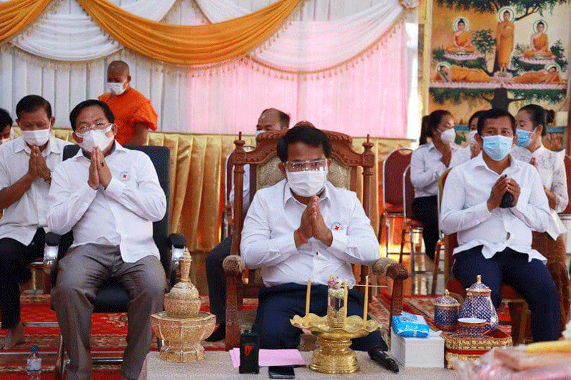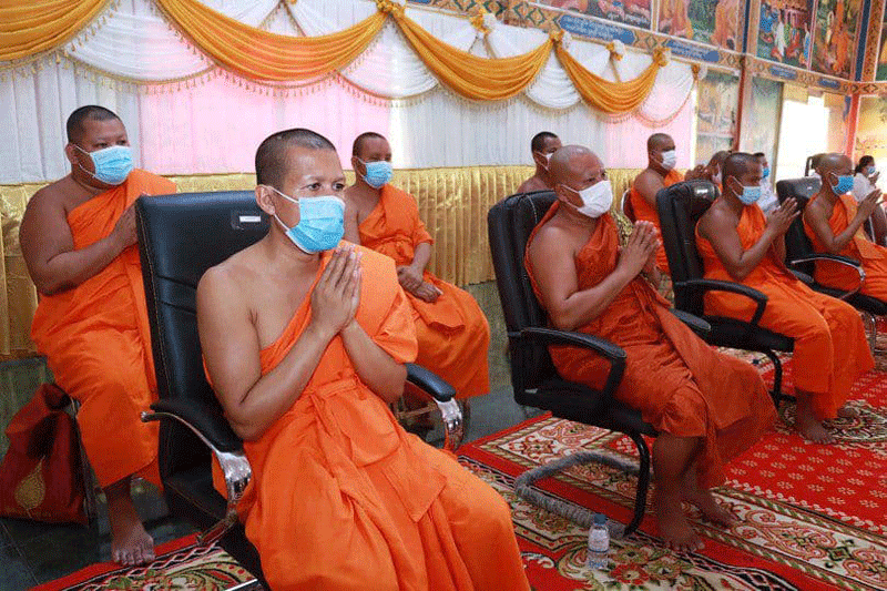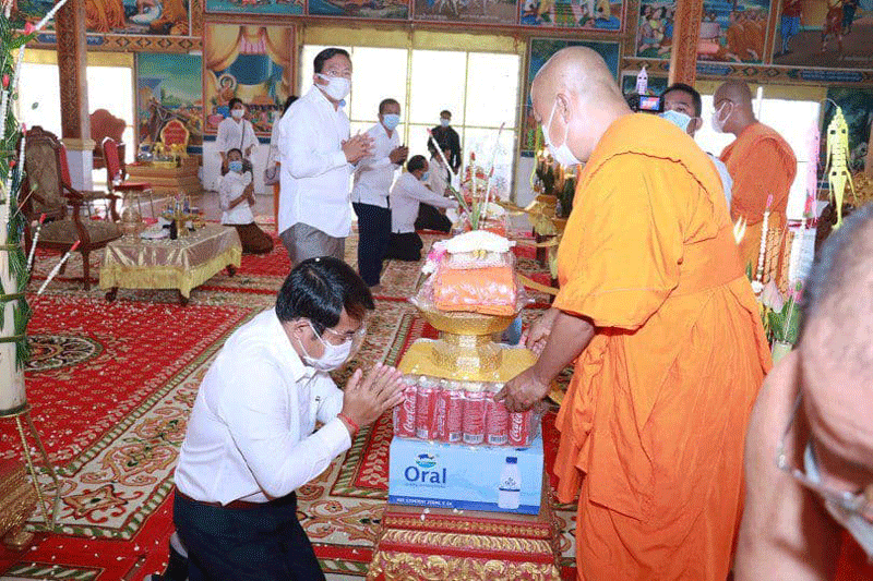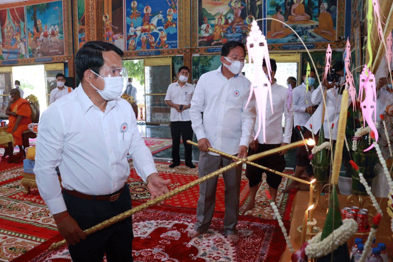 ក្នុងពិធីនោះ ឯកឧត្តមអភិបាលខេត្ត បានលើកហត្ថប្រណម្យ បួងសួង ដល់គុណបុណ្យព្រះរតនត្រ័យ និងវត្ថុស័ក្តិសិទ្ធិទាំងអស់ក្នុងលោក សូមថ្វាយនូវពរជ័យ បវរសួស្ដី សិរីមង្គល មហាប្រសើរគ្រប់ ប្រការជូន សម្ដេចព្រះឧត្តមមុនី ជា សំអាង សូមព្រះអង្គ មានព្រះសុខភាពល្អបរិបូរណ៍ រឹងមាំ ព្រះជន្មាយុយឺនយូរ និងចាកផុតពីរោគាព្យាធិនានា ដើម្បីបន្តដឹកនាំធ្វើឱ្យវិស័យពុទ្ធចក្រកាន់ តែមានភាពរីកចំរើន សម្រាប់ជាទីប្រតិបត្ត និងជាទីសក្ការៈគោរពបូជាសម្រាប់ព្រះសង្ឃ និងពុទ្ធបរិស័ទ តរៀងទៅ។ ក្នុងនាមអភិបាលខេត្តកណ្តាល និងជាប្រធានគណៈកម្មាធិការសាខាកាកបាទក្រហម កម្ពុជាខេត្ត ឯកឧត្តម គង់ សោភ័ណ្ឌ បានស្នើឱ្យមន្ទីរធម៌ការ និងសាសនាខេត្ត ត្រូវបន្តចុះ ស្រាវជ្រាវស្រង់ស្ថិតិនូវចំនួនវត្តអារាមនៅទូទាំងខេត្តកណ្តាល ដែលកំពុងតែជួបការខ្វះខាត់ ក្នុងវិបត្តិជំងឺកូវីដ-១៩ ឱ្យបានឆាប់បំផុត រួចបញ្ជូនមករដ្ឋបាលខេត្ត ដើម្បីរៀបចំចាត់ចែងអំណោយ ជាគ្រឿងឧបភោគបរិភោគ និងបច្ចៃទៅប្រគេនដល់ ព្រះសង្ឃឱ្យបានទាន់ពេលវេលា។ ឆ្លៀតក្នុងឱកាសនោះដែរ ឯកឧត្តមអភិបាលខេត្ត បានអញ្ជើញ វាយស្គរ នៅវត្តសុវណ្ណវារី ហៅវត្តព្រែកតាទែន តបតាមអនុសាសន៍ណែនាំដ៏ខ្ពង់ខ្ពស់ របស់សម្ដេចតេជោ ហ៊ុន សែន ដែលបានស្នើឱ្យគ្រប់វត្តអារាមទាំងអស់ ទូងស្គរ វាយជួង ព្រមៗគ្នាទូទាំងប្រទេស ក្នុង១ថ្ងៃ ៥ដង ដើម្បីជាសាររំលឹកប្រជាពលរដ្ឋក្នុងការចូលរួមបង្ការ និងទប់ស្កាត់ការឆ្លងរីករាលដាលនៃជំងឺកូវីដ-១៩ ជាពិសេស ត្រូវគោរពតាមវិធានការណ៍ «៣ ការពារ និង ៣កុំ»ជានិច្ចឱ្យបានគ្រប់ៗគ្នា។ សូមជម្រាបថា តាមរបាយការណ៍របស់មន្ទីរធម៌ការ និងសាសនាខេត្តកណ្តាល គិតត្រឹមរសៀលថ្ងៃ២៧នេះ ចំនួនវត្តដែលកំពុងតែជួបការខ្វះខាត ក្នុងវិបត្តិជំងឺកូវីដ-១៩ មានចំនួន ៥៩វត្តហើយ ជូនរដ្ឋបាលខេត្ត ដើម្បីជួយដោះស្រាយផងដែរ៕ដោយ ភាវុន