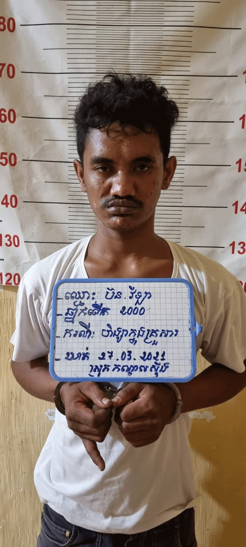 កណ្តាល ៖ យុវជនម្នាក់ត្រូវបានប៉ូលិសប៉ុស្តិ៍បារគូ ឃាត់ខ្លួនក្នុងករណីអំពើហិង្សាក្នុងគ្រួសារ វាយបំផ្លាញ ទ្រព្យសម្បត្តិក្នុងផ្ទះនិងវាយឪពុកខ្លួន កើតហេតុថ្ងៃ សៅរ៍ ទី២៧មីនាឆ្នាំ២០២១ វេលាម៉ោង ៧និង២៥នាទីយប់ នៅចំណុចភូមិ វាល កណ្តោល ឃុំ បារគូ ស្រុក កណ្តាល ស្ទឹង ខេត្តកណ្ដាល។ ប៉ូលិសនិយាយថា ជនរងគ្រោះ ឈ្មោះ បូ ប៊ន ភេទ ប្រុស អាយុ ៤២ឆ្នាំ រស់នៅភូមិ វាល កណ្តោល ឃុំ បារគូ ស្រុកកណ្តាលស្ទឹង ខេត្តកណ្តាល មុខរបរ កសិករ ជាឪពុក ។ចំណែកជនសង្ស័យឈ្មោះ ប៊ន វីឡា ភេទប្រុស អាយុ ២១ឆ្នាំ រស់នៅភូមិ វាល កណ្តោល ឃុំ បារគូ ស្រុកកណ្តាលស្ទឹង ខេត្តកណ្តាល មុខរបរ មិន ពិត ប្រាកដ (ឃាត់ ខ្លួន )។វត្ថុតាងចាប់យករួមមានឈេីជ្រុងចំនួន ០២ និងច្រវាក់ មួយខ្សែ ប្រវែង ១២៨សង់ទីម៉ែត្រ ។
