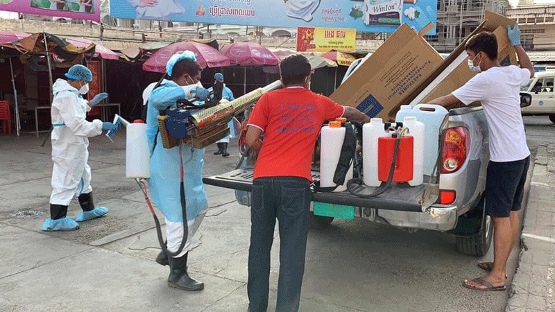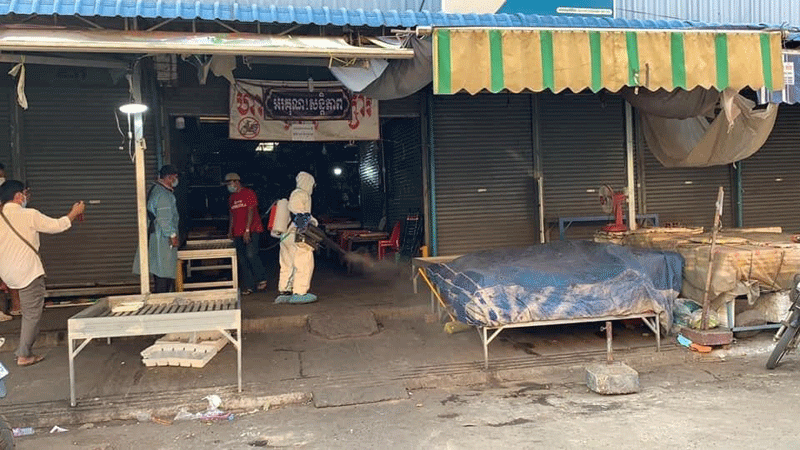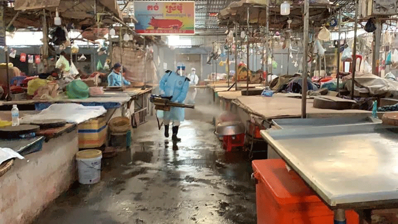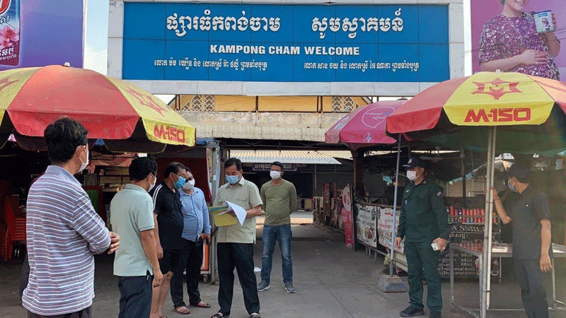 ខេត្តកំពង់ចាម : ឯកឧត្តម អ៊ុន ចាន់ដា អភិបាលខេត្តកំពង់ចាម និងជាប្រធានគណៈកម្មការខេត្តប្រយុទ្ធប្រឆាំងនឹងជំងឺកូវីដ-១៩ បានដឹកនាំមន្ត្រី ជំនាញ ពាក់ព័ន្ធ និង អាជ្ញាធរមូលដ្ឋាន នារសៀល ថ្ងៃ ទី ២៨ ខែមិនា ឆ្នាំ ២០២១ នេះ អញ្ជើញចុះពិនិត្យការបាញ់ថ្នាំសម្លាប់មេរោគនៅក្នុងផ្សារធំ និងផ្សារសាមគ្គី ស្ថិតនៅ ក្នុង ក្រុងកំពង់ចាម តាមវិធានរបស់ក្រសួងសុខាភិបាល បន្ទាប់ពី ផ្អាក ការ ធ្វេី អាជីវកម្ម ចំនួន ១៣ទីតាំង ដោយ ពាក់ព័ន្ធ នឹង ព្រឹត្តិការណ៍ ២០កុម្ភៈ ហើយ មានអ្នកវិជ្ជមានកូវីដ-១៩ បានចូលក្នុងផ្សារនោះនាពេលកន្លងមក។