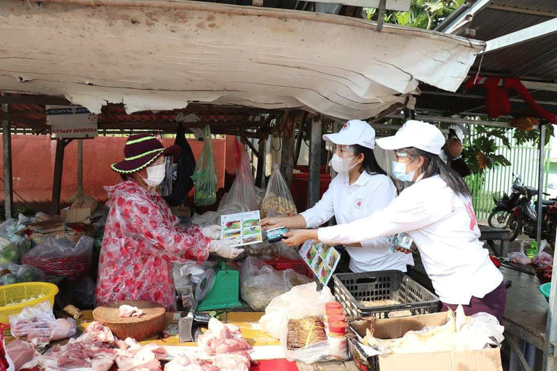 ខេត្តស្វាយរៀង ៖ ដោយមានការយកចិត្តទុកដាក់ខ្ពស់ពីបញ្ហាសុខភាពបងប្អូន ពុកម៉ែ ប្រជាពលរដ្ឋ នៅតាមសហគមន៍ពីសំណាក់សម្ដេចកិត្តិព្រឹទ្ធបណ្ឌិត ប៊ុន រ៉ានី ហ៊ុនសែន ប្រធានកាកបាទក្រហមកម្ពុជា និងដើម្បី ចូលរួមការពារ ទប់ស្កាត់ការរីករាលដាលនៃជំងឺកូវីដ-១៩ ខណៈព្រឹត្តិការណ៍សហគមន៍ ២០ កុម្ភៈកំពុងបន្តតែ ផ្ទុះរាលដាលខ្លាំងជាបន្តបន្ទាប់ នៅថ្ងៃ ៣១ ខែ មីនា ឆ្នាំ ២០២១ នេះឯកឧត្តម ម៉ែន វិបុល ប្រធាន គណៈកម្មាធិការសាខាកាកបាទក្រហមកម្ពុជា ខេត្តស្វាយរៀងបានចាត់ឲ្យក្រុមប្រតិបត្តិសាសាខា បន្តចុះធ្វើ យុទ្ធនាការផ្សព្វផ្សាយពីវិធីកាត់បន្ថយ ហានិភ័យពីការឆ្លង ជំងឺកូវីដ-១៩ ដល់ប្រជាពលរដ្ឋ រស់នៅតាមទីប្រជុំជន តាមផ្លូវសាធារណៈ ត្រង់ចំណុចផ្សាកន្ទុយវ៉ៃ សង្កាត់ចេក ផ្សាស្វាយជ្រំ ស្រុកស្វាយជ្រំ និងតាមទីប្រជំជន ក្នុងក្រុង ស្វាយរៀង ដែលក្រុមការងារបានផ្សព្វផ្សាយដល់ប្រជាពលរដ្ឋបានចំនួន ៣១០ នាក់ស្រី ២៨៥ នាក់ ។