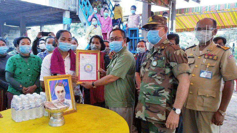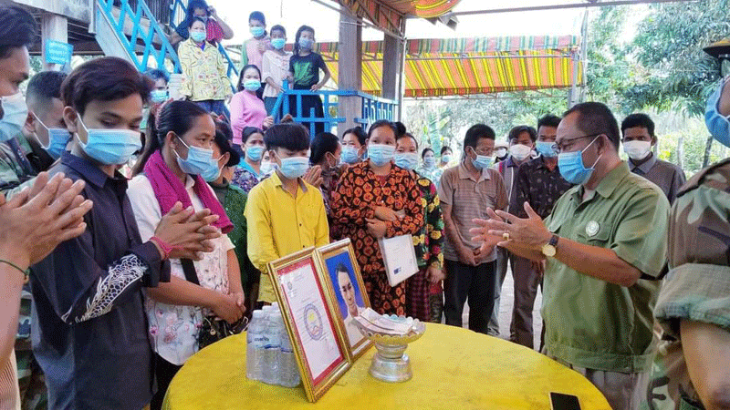ព្រះវិហារ៖នារសៀលថ្ងៃទី៣១ ខែមីនា ឆ្នាំ២០២១ ឯកឧត្តមឧត្តមសេនីយ៍ទោ ច័ន្ទ សុភ័ក្ត្រា មេបញ្ជាការតំបន់ប្រតិបត្តិការសឹករងព្រះវិហារ និងជាប្រធាន ស អ ក ខេត្តព្រះវិហារ បានដឹកនាំក្រុមការងារ ស អ ក ខេត្ត-ស្រុក និងប្រធាន-អនុប្រធានសាខា ស អ ក ឃុំភ្នំត្បែងពីរ សរុបចំនួន៤៥នាក់ ស្រីចំនួន០៦នាក់ អញ្ជើញមកចូលរួមរំលែកទុក្ខនិងនាំយក ថវិកាមរណៈសង្គ្រោះ នៃសមាគម ស អ ក ចំនួន៤.០០០.០០០៛(បួនលានរៀល) ជូនដល់ក្រុមគ្រួសារនៃសព ឈ្មោះ អៀត អ៊ួត ភេទ ប្រុស អាយុ៤៨ឆ្នាំ រស់នៅភូមិបរិបូរ ឃុំភ្នំត្បែងពីរ ស្រុកគូលែន ខេត្តព្រះវិហារ ដែលទទួលមរណៈភាពនៅក្នុងមន្ទីរពេទ្យខេត្តសៀមរាប កាលពីម៉ោង១ និង២០នាទី ថ្ងៃទី៣១ ខែមីនា ឆ្នាំ២០២១ដោយរោគាពាធ ដើម្បីចាត់ចែងធ្វើបុណ្យតាមប្រពៃណីផងដែរ៕SKS