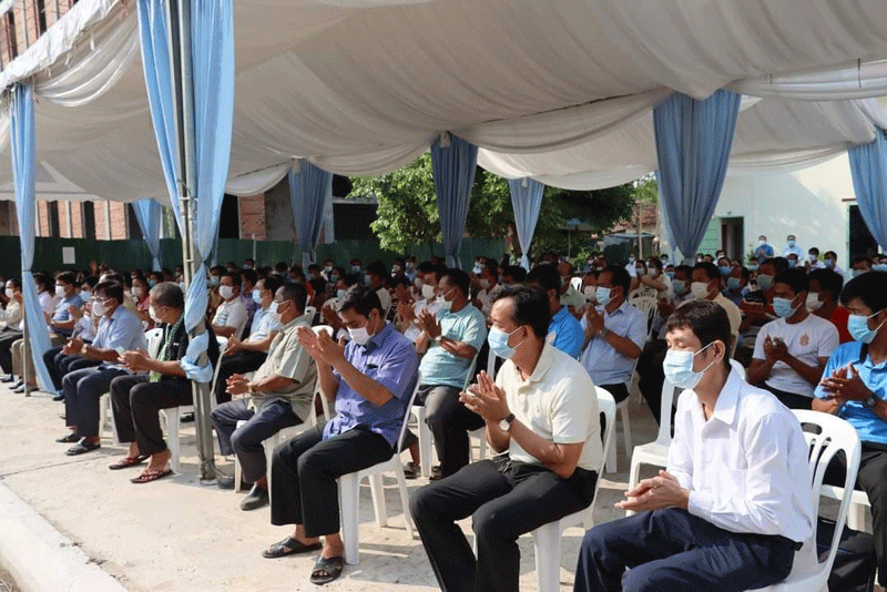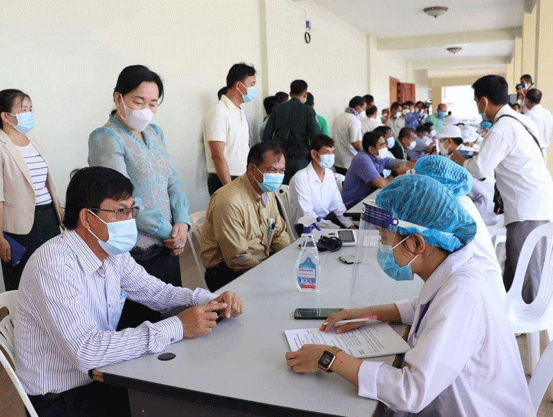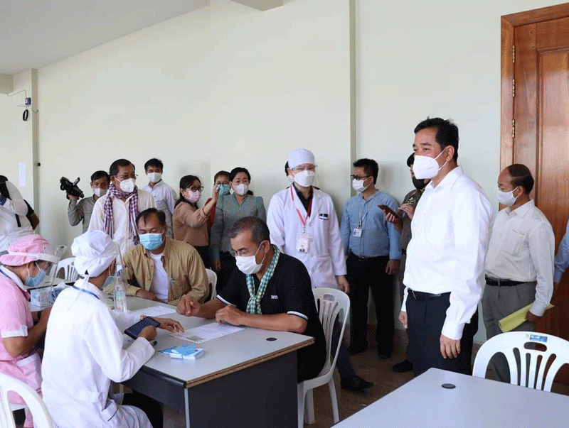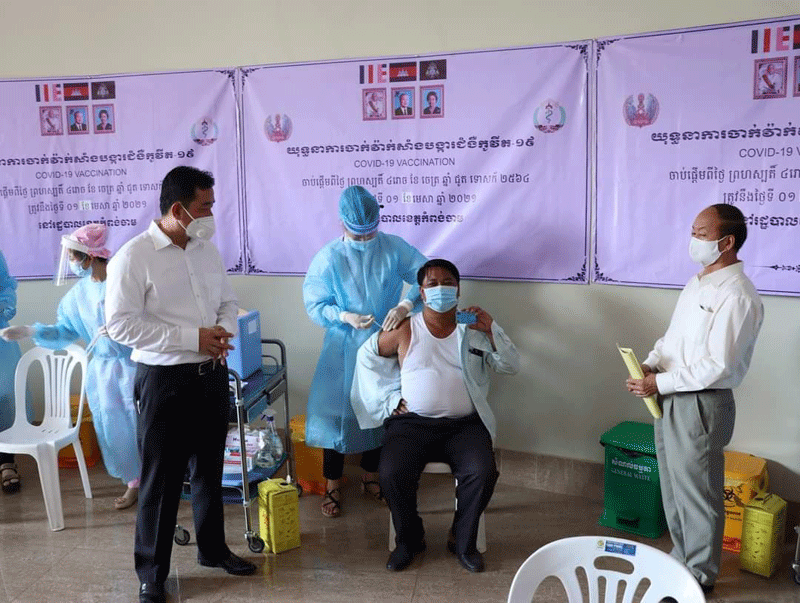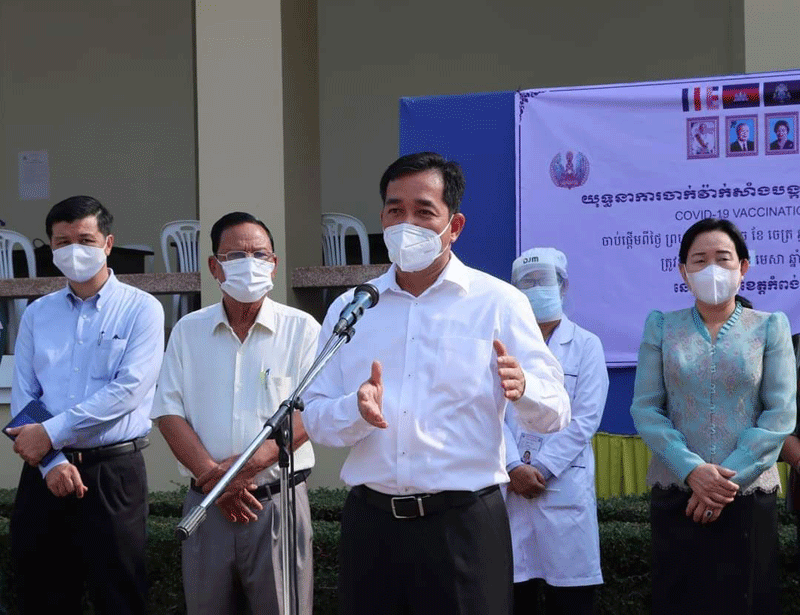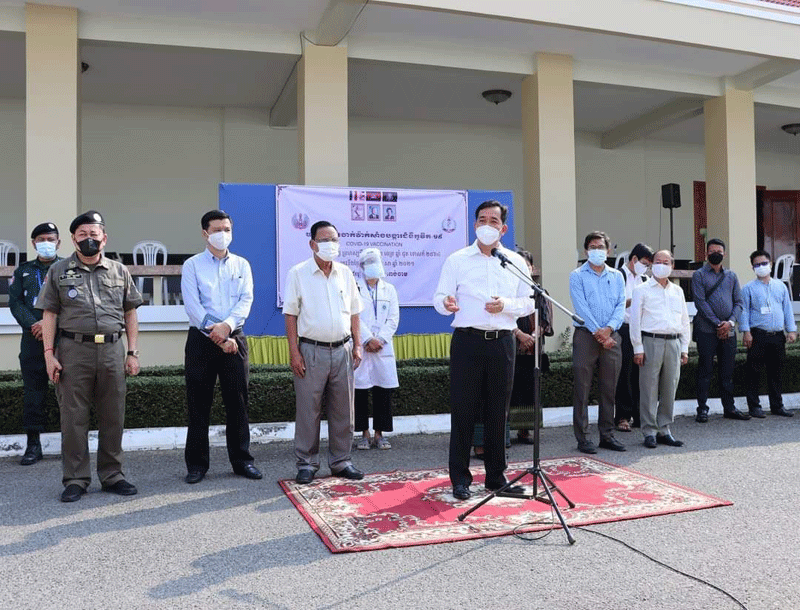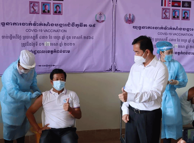 កំពង់ចាមៈ នៅព្រឹកថ្ងៃទី១ ខែមីនា ឆ្នាំ២០២១នេះ ឯកឧត្តម អ៊ុន ចាន់ដា អភិបាលនៃគណៈអភិបាល ខេត្តកំពង់ចាម និងជាប្រធានគណៈកម្មការខេត្តប្រយុទ្ធប្រឆាំងនឹងជំងឺកូវីដ-១៩ និងឯកឧត្តម ខ្លួត ផន ប្រធានក្រុមប្រឹក្សាខេត្ត រួមជាមួយអភិបាលរងខេត្ត និងមន្ត្រីពាក់ព័ន្ធ អញ្ជើញសំណេះសំណាល និងពិនិត្យការចាក់វ៉ាក់សាំងកូវីដ-១៩ ជូនមន្ត្រីរាជការ និងប្រជាពលរដ្ឋ ក្នុងក្រុងកំពង់ចាម និងស្រុក កំពង់សៀម ដែលរៀបចំឡើងនៅសាលាខេត្តកំពង់ចាម។ ឯកឧត្តម អ៊ុន ចាន់ដា មានប្រសាសន៍ថា សម្រាប់យុទ្ធនាការចាក់វ៉ាក់សាំងបង្ការជំងឺកូវីដ-១៩ នេះ គឺធ្វើឡើងទូទាំងប្រទេស នៅថ្ងៃទី០១ ខែមេសា ឆ្នាំ២០២១ ព្រមគ្នា ដើម្បីចូលរួមបង្ការ ទប់ស្កាត់ការឆ្លងរីករាលដាលជំងឺកូវីដ-១៩ នៅក្នុងសហគមន៍កម្ពុជា។ ជាមួយគ្នានេះដែរ ឯកឧត្តមអភិបាលខេត្ត ក៏បានថ្លែងអំណរគុណ ដ៏ជ្រាលជ្រៅ ជូនចំពោះសម្តេចតេជោ ហ៊ុន សែន នាយករដ្ឋមន្ត្រីនៃកម្ពុជា ដែលបានផ្តល់វ៉ាក់សាំង ដើម្បីចាក់ជូនមន្ត្រីរាជការ និងបងប្អូនប្រជាពលរដ្ឋនៅក្នុងខេត្តកំពង់ចាម និងក្នុងក្របខណ្ឌទូទាំង ប្រទេស ដោយឥតគិតថ្ល៕ SKS