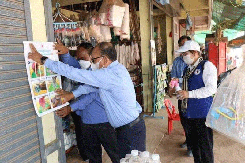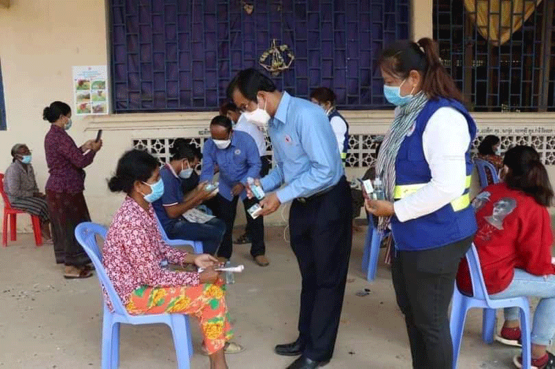 ខេត្តកំពង់ឆ្នាំងៈ ប្រធានគណៈកម្មាធិការសាខា លោកអមសុភា រួមដំណើរដោយ លោក អ៊ូ ជួបកុសល ហិរញ្ញឹកគណៈកម្មាធិការសាខា ឯកឧត្ដមវេជ្ជ. ប្រាក់ វ៉ុន លេខាធិការគណៈកម្មាធិការសាខា នាយកប្រតិបត្តិសាខា អនុសាខា កក្រក ស្រុកបរិបូណ៌ បានចុះធ្វើការអប់រំផ្សព្វផ្សាយអំពីការបង្ការ ទប់ស្កាត់ការរីករាលដាលជំងឺកូវីដ១៩ ដល់ប្រជាពលរដ្ឋនៅ ភូមិមេលំ និងបានបិទរូបភាព ផ្សព្វផ្សាយពីការលាងសម្អាតដៃ នៅក្នុងផ្សារបរិបូណ៌ ស្រុកបរិបូណ៌ ខេត្តកំពង់ឆ្នាំងនៅថ្ងៃទី១ មេសា២០២១ ។មានប្រសាសន៍នៅក្នុងឱកាសនោះ លោក អម សុភា បានមានប្រសាសន៍ថាៈ ដោយមានការយកចិត្តទុកដាក់ពីសម្តេចកិត្តិព្រឹទ្ធបណ្ឌិត ប៊ុន រ៉ានី ហ៊ុនសែន ប្រធានកាកបាទ ក្រហមកម្ពុជា អំពីសុខុមាលភាព និងជីវភាពរស់នៅរបស់ប្រជាពលរដ្ឋ ក្នុងការបង្ការ ការពារជំងឺឆ្លង កូវីដ១៩ នាពេលបច្ចុប្បន្ននេះ គ្រប់សាខា និង អនុសាខា តែងតែបានអនុវត្តតាមការណែនាំ របស់សម្តេចកិត្តិព្រឹទ្ធបណ្ឌិត ប៊ុន រ៉ានី ហ៊ុន សែន ដោយបានបន្តចុះធ្វើយុទ្ធនាការ អប់រំផ្សព្វផ្សាយ ជាប្រចាំ ពីវិធីកាត់បន្ថយហានិភ័យ ពីការឆ្លងជំងឺកូវីដ១៩ ជូនដល់ប្រជាពលរដ្ឋគ្រប់ទីកន្លែង ក្នុងខេត្តកំពង់ឆ្នាំង ដើម្បីឲ្យប្រជាពលរដ្ឋបានយល់កាន់តែច្បាស់អំពីអនាម័យ និង វិធានការនានាក្នុងការថែទាំងសុខភាព ដើម្បីចៀសផុតពីជំងឺកូវីដ១៩ ដែលកំពុងកើតឡើង នៅលើប្រទេសទូទាំងពិភពលោក ក៏ដូចជានៅប្រទេសកម្ពុជាយើងដែរ។លោក អម សុភា បានមានប្រសាសន៍បន្តទៀតថា ជំងឺកូវីដ-១៩ កំពុងរីករាលដាលនៅលើសកលលោក ដែលក្នុងនោះ ប្រទេសកម្ពុជាក៏កំពុងរងគ្រោះផងដែរ។ ដូច្នេះដើម្បីការពារ ទប់ស្កាត់ និងបង្ការការចម្លងជំងឺ នេះបងប្អូនប្រជាពលរដ្ឋទាំងអស់ ត្រូវរក្សាសុខភាព និងរក្សាអនាម័យ និងចូលរួមអនុវត្តតាមការណែ នាំរបស់ក្រសួងសុខាភិបាលនិងអនុវត្តអោយបានតាមអនុសាសន៍របស់សម្តេចតេជោ ហ៊ុន សែន គឺ ៣ការពារ ៣កុំ និង ២ចូលរួម ។ ក្នុងនោះផងដែរ សាខាក៏បានចែកជូននូវសាប៊ូ និងជែល ដល់ប្រជាពលរដ្ឋដែលបានមកចូលរួមចំនួន ១៨នាក់ ក្នុងម្នាក់ទទួលបាន សាប៊ូ ១ដុំ និងជែលសម្រាប់លាងដៃ ១ដបតូច ៕ លោកស្រីសានផល្លា
