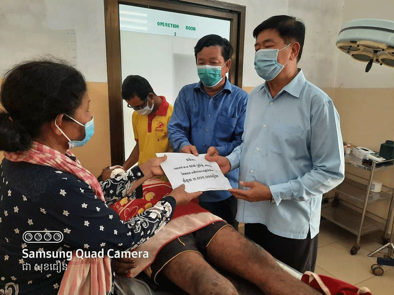 ខេត្តប៉ៃលិន ៖ ក្រោយពីទទួលដំណឹងថា មានជនរងគ្រោះម្នាក់ ដែលបើកត្រាក់ទ័រស៊ីឈ្នួល ភ្ជួរដីឱ្យប្រជាពលរដ្ឋមួយកន្លែង នៅរសៀលថ្ងៃទី០៣ ខែមេសា ឆ្នាំ២០២១ លោកជំទាវ បាន ស្រីមុំ អភិបាលខេត្តប៉ៃលិន និងជាប្រធានសាខាកាកបាទក្រហមកម្ពុជាខេត្ត បានចាត់ឱ្យ ឯកឧត្តម ហុក សុផល អភិបាលរងខេត្ត និងជាអនុប្រធានសាខា ដោយមានការអញ្ជើញចូលរួមពី ឯកឧត្តម សៅ សារ៉ាត់ អ្នកតំណាងរាស្ត្រមណ្ឌលប៉ៃលិន នាំយកថវិកាសង្គ្រោះបន្ទាន់ចំនួន៣លានរៀល ជូនដល់លោក ប៊ន សាមិត្ត ហៅខ្លឹម អាយុ២៦ឆ្នាំ ដែលកំពុងសង្គ្រោះនៅមន្ទីរពេទ្យបង្អែកខេត្តប៉ៃលិន បន្ទាប់ពីបានរងគ្រោះដោយសារភ្ជួរដីប៉ះចំមីនតោនផ្ទុះ ខណ:សេសសល់ពីសម័យសង្គ្រាម ។