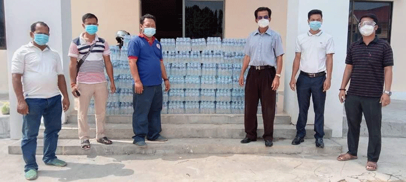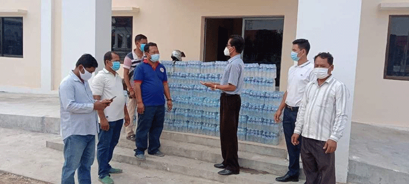 អំណោយដែលភ្នាក់ងារសារព័ត៌មានប្រចាំខេត្តស្វាយរៀង បានផ្ដល់ជូនមន្ទីរព័ត៌មានខេត្ត រួមមាន ទឹកសុទ្ធចំនួន ១៥០យូរ និងម៉ាសចំនួន ៥ប្រអប់។ដោយ សាយ ហ្គន