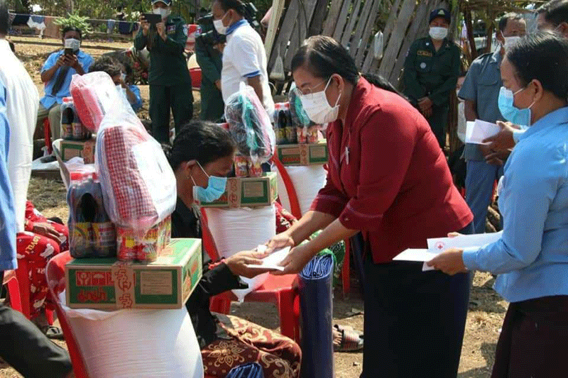 មានប្រសាសន៍ទៅកាន់បងប្អូនប្រជាពលរដ្ឋដែលរងគ្រោះនាឱកាសនោះ លោកជំទាវ ចឹកហេង បានពាំនាំនូវការផ្តាំផ្ញើរសួរសុខទុក្ខ និងចូលរួមសោកស្ដាយពីសំណាក់ឯកឧត្តម ប្រាក់សុវណ្ណ ប្រធានគណៈកម្មាធិការសាខាកាកបាទក្រហមកម្ពុជាខេត្តព្រះវិហារ ពិសេសប្រសាសន៍ផ្ដាំផ្ញើរ របស់សម្ដេចកិតិ្តព្រឹទ្ធបណ្ឌិត ប៊ុន រ៉ានី ហ៊ុនសែន ប្រធានកាកបាទក្រហមកម្ពុជា ដែលសម្ដេចតែងតែ យកចិត្តទុកដាក់ជាប់ជានិច្ចអំពីសុខទុក្ខរបស់បងប្អូននៅគ្រប់ទីកន្លែង ពិសេសបងប្អូនដែលរង គ្រោះដោយគ្រោះមហន្តរាយធម្មជាតិផ្សេងៗ ដោយមិនប្រកាន់និន្នាការនយោបាយ ពូជសាសន៍ ពណ៌សម្បុរ ឬសាសនាអ្វីឡើយ ។ ជាក់ស្ដែងនៅថ្ងៃនេះ សាខាកាកបាទក្រហមកម្ពុជាខេត្តព្រះវិហារ បាននាំយកអំណោយមនុស្សធម៌ ដើម្បីជួយសម្រាលដល់ទុក្ខលំបាករបស់បងប្អូនដែលរង គ្រោះដោយសារខ្យល់កន្រ្តាក់នាពេលថ្មីៗនេះ ដែលបានបណ្ដាលអោយរលំផ្ទះចំនួន១ខ្នង ធ្លាក់ពីជើងតាងចំនួន១ខ្នង និងរបើកដំបូងចំនួន២៧ខ្នង តែពុំបណ្ដាលឲ្យមានគ្រោះថ្នាក់ដល់អាយុ ជីវិតបងប្អូនណាម្នាក់ឡើយ ។ នៅក្នុងឪកាសនោះផងដែរ លោកជំទាវ ចឹក ហេង ក៏បានផ្ដាំផ្ញើរ ដល់បងប្អូនឲ្យចូលរួមជាមួយរាជរដ្ឋាភិបាលក្នុងការទប់ស្កាត់ការរីករាលដាលនៃជម្ងឺកូវីដ19ដែលបានកំពុងរីករាលដាលនៅតាមបណ្ដាខេត្តមួយចំនួននៅក្នុងប្រទេសកម្ពុជា ដែលផ្ទុះឡើងនៅក្នុងព្រិត្តិការណ៍ សហគមន៍ ២០កុម្ភះ ២០២១ ។ ព្រមទាំងបានជំរុញបងប្អូន ត្រូវមានអនាម័យជាប់ជាប្រចាំ និងអនុវត្តន៍ ទៅតាមការណែនាំរបស់ក្រសួងសុខាភិបាល ពិសេសវិធានការទាំង6ចំណុចរបស់ រាជរដ្ឋាភិបាល ដែលមាន3កុំ និង3ការពារ ។ សម្ភារះដែលបានយកមកផ្ដល់ជូននាពេលនេះរួមមានក្នុង មួយគ្រួសារៗ ទទួលបានអង្ករ 25 គ.ក មី១កេះ ត្រីខ ១យួរ ទឹកស៊ីអ៊ីវ ១យួរ សារុង១ ក្រមា១ ភួយ១ មុង១ ថវិការ២ម៉ឺនរៀល ក្នុងនោះគ្រួសារដែលរបើកដំបូលខ្លាំង ចំនួន15គ្រួសារ និងធ្លាក់ពីជើងតាង ចំនួន1គ្រួសារ ទទួលបានថវិការ5ម៉ឺនរៀល និងតង់ចំនួន1 ហើយមួយគ្រួសារទៀតដែលដួលរលំផ្ទះ ទទួលបានថវិការ20ម៉ឺនរៀលព្រមទាំងតង់ចំនួន១ផងដែរ៕ SPS