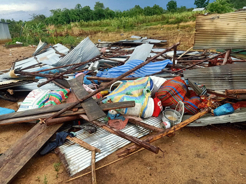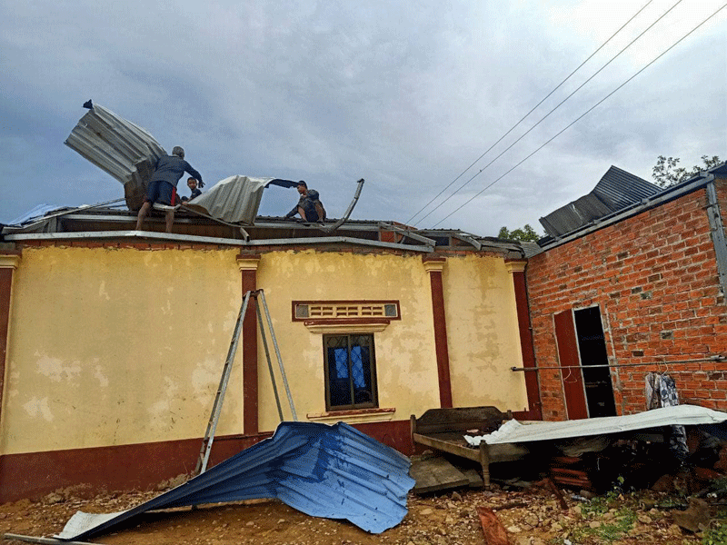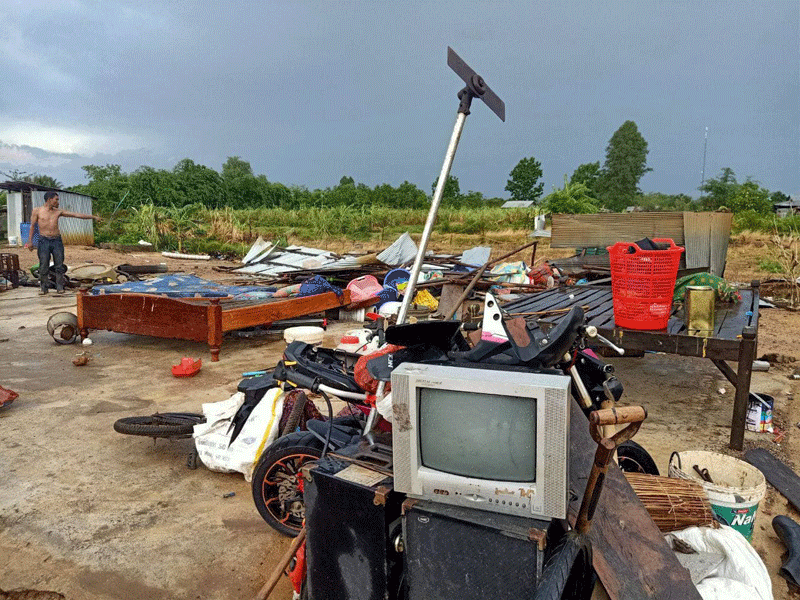 ខេត្តប៉ៃលិន ៖ សេចក្តីរាយការណ៍ឱ្យដឹងថា មានករណីភ្លៀងធ្លាក់លាយឡំនឹងខ្យល់កន្ទ្រាក់ បណ្តាលអោយប៉ើងខូចខាតដំបូលផ្ទះប្រជាពលរដ្ឋចំនួន១៣ខ្នង ក្នុងនោះធ្ងន់ធ្ងរ១ខ្នង ស្ថិតនៅក្នុងឃុំចំនួន៣គឺឃុំអូរអណ្តូង ឃុំសាលាក្រៅ និងឃុំស្ទឹងត្រង់ ស្រុកសាលាក្រៅ ខេត្តប៉ៃលិន ។