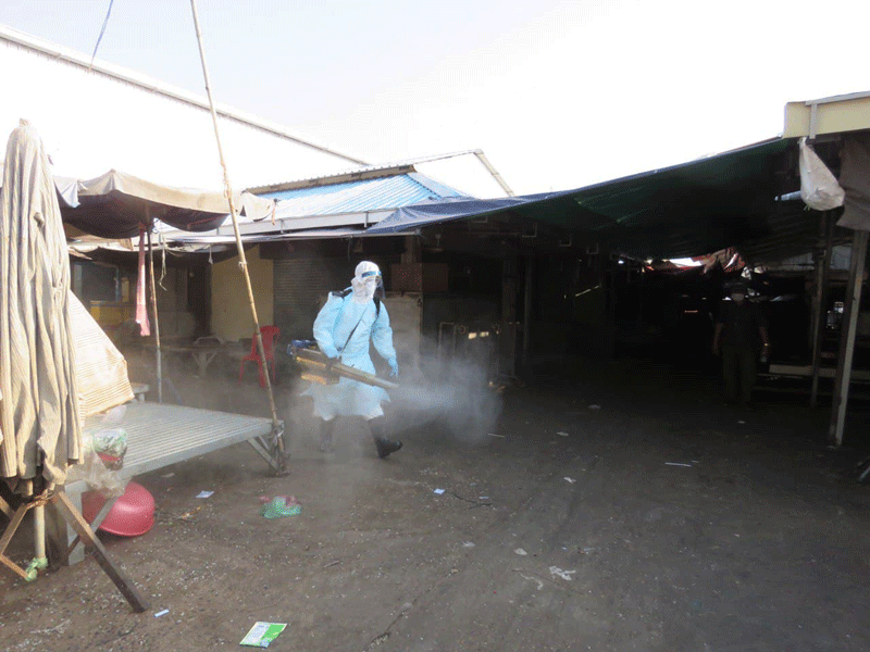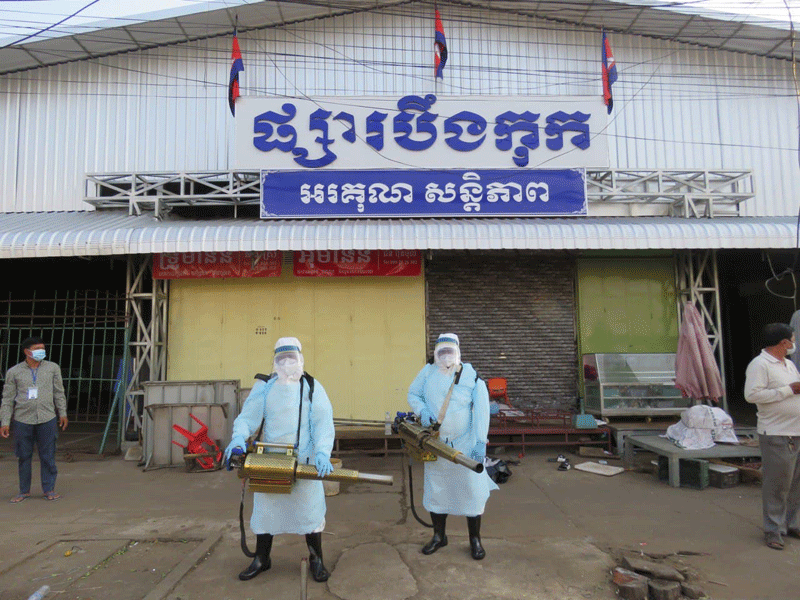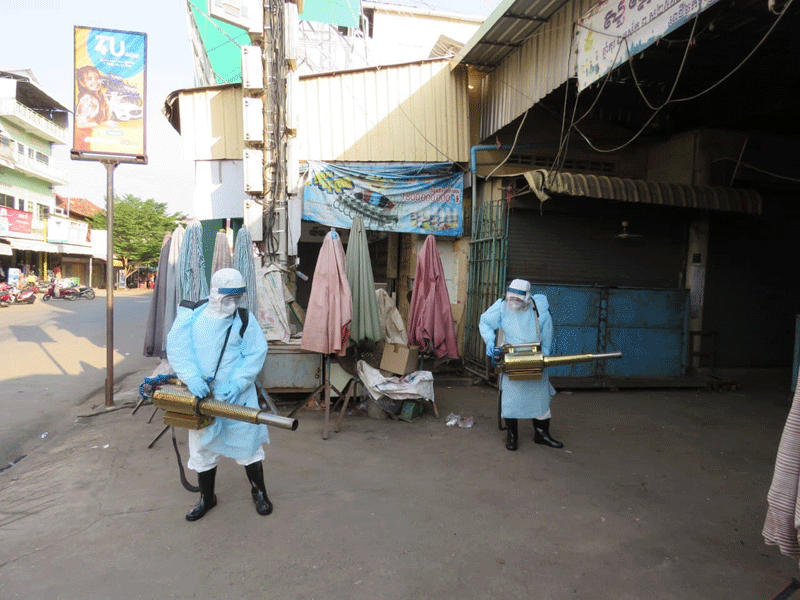 កំពង់ចាម : ឯកឧត្តម អ៊ុន ចាន់ដា អភិបាលនៃគណៈអភិបាលខេត្តកំពង់ចាម នារសៀល ថ្ងៃ ទី ៦ ខែមេសា ឆ្នាំ ២០២១ នេះ បាន ចាត់តាំង ក្រុម ការងារ មន្ទីរ សុខាភិបាល ចុះ បាញ់ ថ្នាំ សម្លាប់ មេរោគ នៅ ក្នុង ផ្សារ បឹងកុក ក្រុង កំពង់ចាម ខណៈសេវាកម្ម អាជីវកម្មពេលរាត្រី ត្រូវបិទទ្វារចាប់ពីម៉ោង៨យប់ ដល់ម៉ោង៥ភ្លឺ ដោយឡែក រម្មណីយដ្ឋានទេសចរណ៍ទាំងអស់ក្នុងខេត្តកំពង់ចាម ត្រូវផ្អាកសកម្មភាព ដែល ជា ការអនុវត្តនូវវិធានការរដ្ឋបាល ដើម្បីទប់ស្កាត់ការឆ្លងរីករាលដាល នៃជំងឺកូវីដ-១៩ រយៈពេល២សប្ដាហ៍ ចាប់ពីថ្ងៃទី៨ ដល់ថ្ងៃទី២១ ខែមេសា ឆ្នាំ២០២១ ។