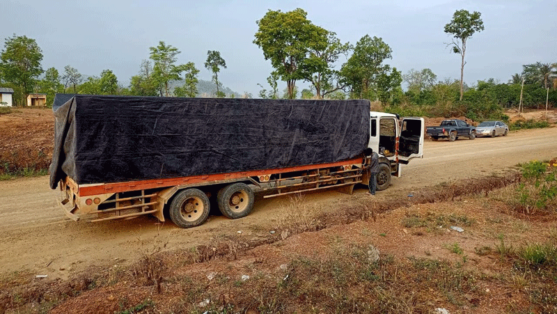 ខេត្តពោធិ៍សាត់:សមត្ថកិច្ចនគបាលស្រុកវាលវែងធ្វើការឃាត់រថយន្តធុនធំដឹងឈើចម្រុះលោតឆត្រគ្មានលិខិតអនុញ្ញាតិ ។