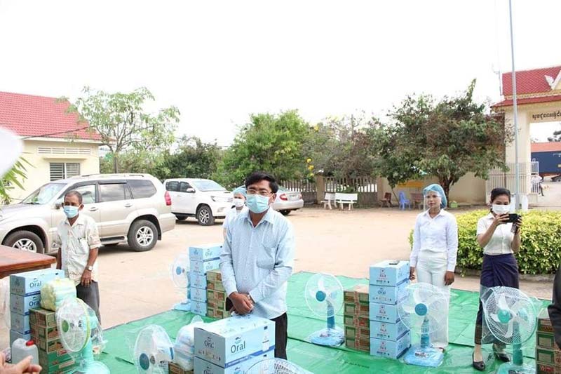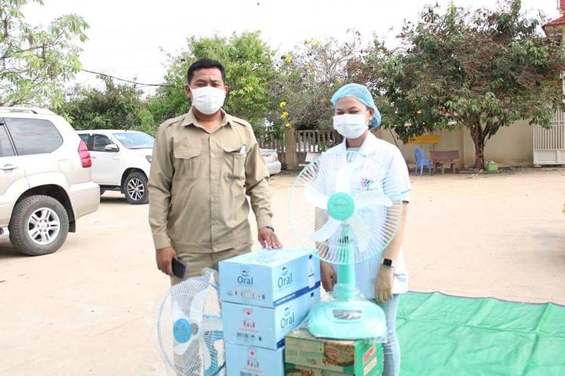 ខេត្តស្វាយរៀង៖នៅព្រឹកថ្ងៃទី០៧ ខែមេសា ឆ្នាំ២០២១ លោកជំទាវ ដួង វណ្ណា លោកជំទាវ ពៅ សុភាព អ្នកតំណាងរាស្ត្រមណ្ឌលស្វាយរៀង និងក្រុមការងារ បាននាំយកអំណោយលោកជំទាវ កិត្តិសង្គហបណ្ឌិត ម៉ែន សំអន ឧបនាយករដ្ឋមន្ត្រី រដ្ឋមន្ត្រីក្រសួងទំនាក់ទំនងជាមួយរដ្ឋសភា ព្រឹទ្ធសភា និងអធិការកិច្ច និងជាប្រធានក្រុមការងារចុះជួយខេត្តស្វាយរៀង ប្រគល់ជូនដល់ក្រុមការងារចត្តាឡីស័កថ្នាក់ស្រុក ក្រុមការងារចត្តាឡីស័កថ្នាក់ឃុំ ដែលមានឃុំស្វាយធំ ឃុំគ្រួស ឃុំស្វាយអង្គ ឃុំធ្លក និងក្រុមគ្រូពេទ្យចាក់វ៉ាក់សាំងបង្ការជំងឺកូវីដ-១៩ ចំនួន២ទីតាំង នៅអនុសាខាកាកបាទក្រហមកម្ពុជាស្រុក និងនៅមណ្ឌលសុខភាពឃុំឈើទាល។ មានប្រសាសន៍ក្នុងពិធីចែកសម្ភារនេះ លោកជំទាវ ដួង វណ្ណា សំណូម តាមអង្គភាព និងឃុំត្រូវអនុវត្តអោយបាននូវវិធានការ ៣កុំ ៣ការពារ របស់ប្រមុខរាជរដ្ឋាភិបាលកម្ពុជា និងគោលការណ៍ណែនាំរបស់ក្រសួងសុខាភិបាលដែលបានដាក់ចេញ។សម្ភារចែកជូនក្នុង១ទីតាំងរួមមាន មីចំនួន៥កេស ទឹកសុទ្ធ៥កេស ម៉ាស៤០០ម៉ាស អាល់កុល១០លីត្រ កង្ហារ២៕