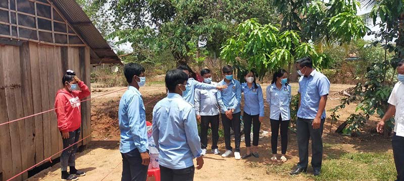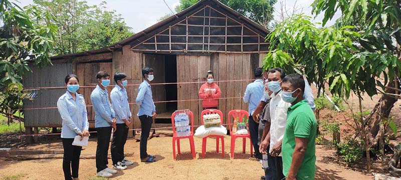 ក្នុងការចុះសួរសុខទុក្ខ និងផ្តល់ស្បៀងដល់ពលរដ្ឋ កំពុងធ្វើចត្តាឡីស័កក្នុងផ្ទះ លោក សៀ សុខុម អនុប្រធាន ស.ស.យ.កខេត្ត បានមានប្រសាសន៍ថា ៖ បន្ទាប់ពីទទួលបានការណែនាំដ៏ខ្ពង់ខ្ពស់ពីសំណាក់លោកជំទាវ បាន ស្រីមុំ អភិបាលខេត្ត លោកបានដឹននាំក្រុមការងារ ស.ស.យ.ក មូលដ្ឋានផ្តល់ស្បៀងជាគ្រឿងឧបភោគបរិភោគ ដល់ប្រជាពលរដ្ឋចំនួន០៥គ្រួសារខាងលើ ។ លោកបន្តទៀតថា ទន្ទឹមនឹងការផ្តល់ស្បៀងនោះដែរ ក្រុមការងារ ក៏បានឆ្លៀតឱកាសធ្វើការផ្សព្វផ្សាយឱ្យប្រជាពលរដ្ឋយល់ដឹងកាន់តែច្បាស់ និងអនុវត្ត ឱ្យបានខ្ជាប់ខ្ជួននូវវិធានការ (០៣ការពារ និង០៣កុំ) របស់ប្រមុខរាជរដ្ឋាភិបាល ដែលដឹកនាំដោយ សម្តេចតេជោ ហ៊ុន សែន នាយករដ្ឋមន្រ្តី នៃព្រះរាជាណាចក្រកម្ពុជា និងតាមការណែនាំរបស់ក្រ សួងសុខាភិបាល ដើម្បីរួមគ្នាទប់ស្កាត់ការរីករាលដាលនៃជំងឺកូវីដ-១៩ ។ លោកបញ្ជាក់ថា មិនត្រូវឱ្យប្រជាពលរដ្ឋ ដែលកំពុងស្នាក់នៅធ្វើចត្តាឡីស័ក ដើរហើរចេញពីក្រៅផ្ទះ ដោយគ្មានការអនុញ្ញាតនោះឡើយ ។ បើសិនជាស្រឡាញ់ខ្លួនឯង ក្រុមគ្រួសារ និងសង្គមជាតិ ត្រូវតែចូលរួមស្តាប់តាមការណែនាំរបស់អាជ្ញាធរមូលដ្ឋាន ។