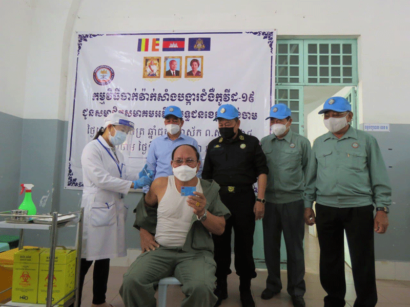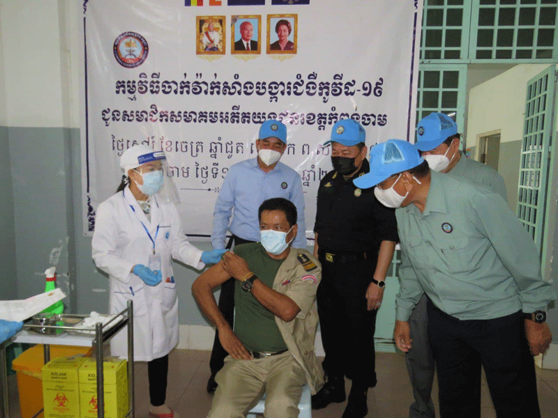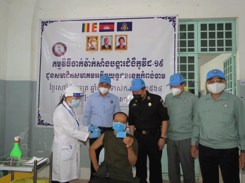 កំពង់ចាម : ឯកឧត្តម អ៊ុន ចាន់ដា អភិបាលខេត្តនិងជាប្រធានកិត្តិយសសមាគមអតីតយុទ្ធជន កម្ពុជាខេត្តកំពង់ចាម នាព្រឹក ថ្ងៃ ទី ១០ ខែមេសា ឆ្នាំ ២០២១ នេះ បាន អញ្ជើញ បើក យុទ្ធនាការ ចាក់ វ៉ាក់សាំង បង្ការ ជំងឺ កូវីដ -១៩ ជូន សមាជិក សមាគម អតីត យុទ្ធជន កម្ពុជា ដែល ស្ម័គ្រចិត្ត ទទួល វ៉ាក់សាំង( ស៊ីណូរ៉ាក់) ក្នុង ជំហានទី១ នៅ មន្ទីរពេទ្យ បង្អែក ខេត្តកំពង់ចាម ដោយ មានការ អញ្ជើញ ចូលរួមពី ឯកឧត្តម ឧត្តមសេនីយ៍ឯក ចាន់ លំផាត់ សមាជិកអចិន្ត្រៃយ៍ សមាគមអតីតយុទ្ធជនកម្ពុជា ឯកឧត្តម វេជ្ជបណ្ឌិត គីមសួរ ភីរុណ ប្រធានមន្ទីរសុខាភិបាល និង ឯកឧត្តម លោកជំទាវ អភិបាលរងខេត្ត ផងដែរ ។