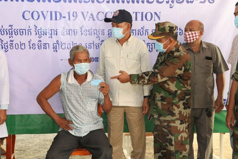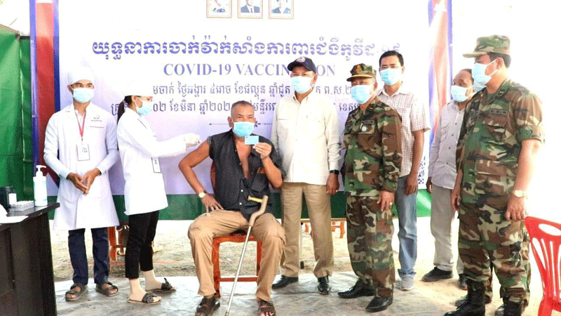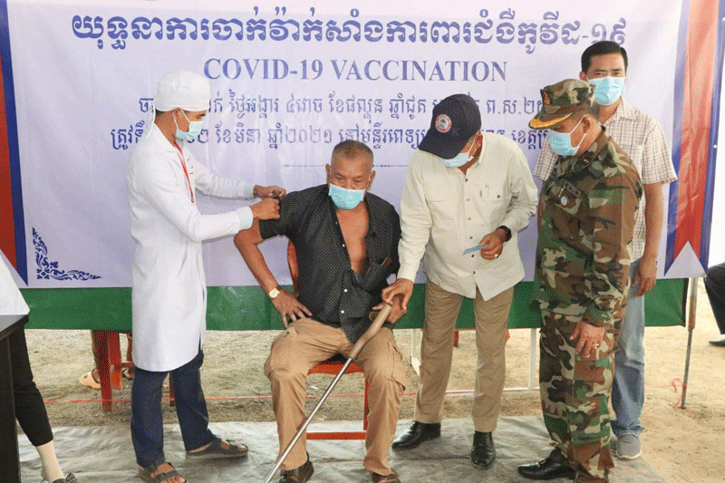 ព្រះវិហារៈ នៅព្រឹកថ្ងៃទី១១ ខែមេសា ឆ្នាំ២០២១នេះ ឯកឧត្ដម ឧត្តមសេនីយ៍ ឯក ង៉ែត ចាន់ថុន នាយរងសេនាធិការចំរុះ និងជា សមាជិកគណៈអចិន្ត្រៃយ៍សមាគមអតីតយុទ្ធជនកម្ពុជា ឯកឧត្ដម ឧត្តមសេនីយ៍ទោ លៀង ឡេង មេបញ្ជាការរង យោធភូមិភាគ ទី៤ ប្រចាំទិសខេត្តព្រះវិហារ និង ឯកឧត្តម ឧត្តមសេនីយ៍ ទោ ច័ន្ទ សុភ័ក្រ្តា មេបញ្ជាការ តំបន់ប្រតិបត្តិការសឹករងព្រះវិហារ និងជា ប្រធានសមាគមអតីតយុទ្ធជនកម្ពុជាខេត្តព្រះវិហារ អមដំណើរដោយអាជ្ញាធរ ស្រុកជាំក្សាន្ត ប្រធាន កិត្តិយសសមាគមស្រុក រួមនិងប្រធាន/អនុប្រធានសាខាស្រុក បានអញ្ជើញចុះសួរសុខទុក្ខ និងត្រួតពិនិត្យ មើលការចាក់វ៉ាក់សាំងការពារជម្ងឺកូវីត១៩ ជូនដល់សមាជិកសមាគមអតីតយុទ្ធជន កម្ពុជាស្រុកជាំក្សាន្ត។