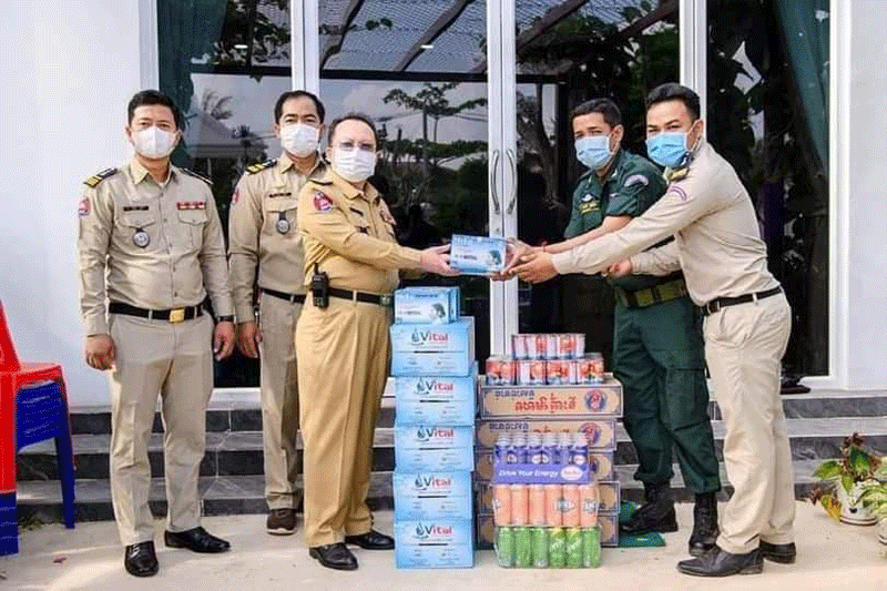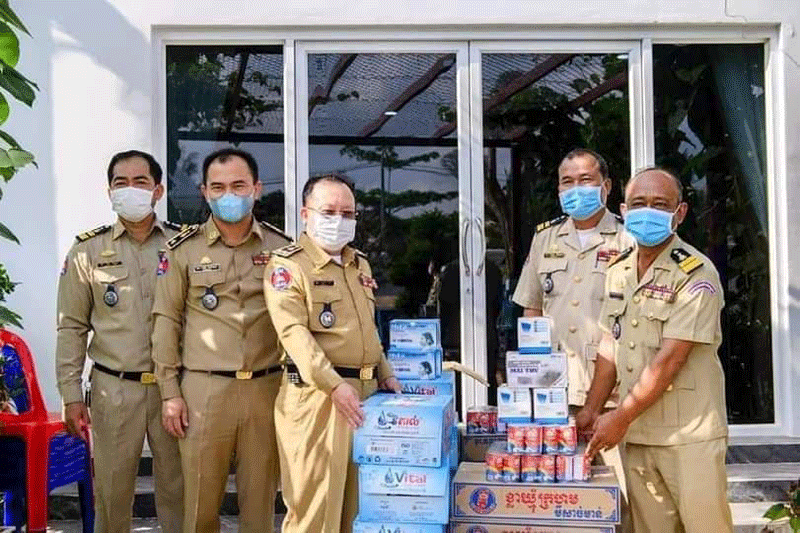 ក្នុងនោះលោកស្នងការបានឧត្ថម្ភទឹកសុទ្ធចំនួន៥៥កេះ,មីចំនួន៥៥កេះ,ត្រីខចំនួន៥៥កេះ,ទឹកក្រូចចំនួន៥១កេះ និង ម៉ាស់ចំនួន៥៥ប្រអប់៕អ្នកស្រីសានផល្លា