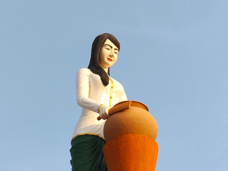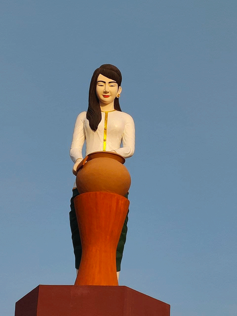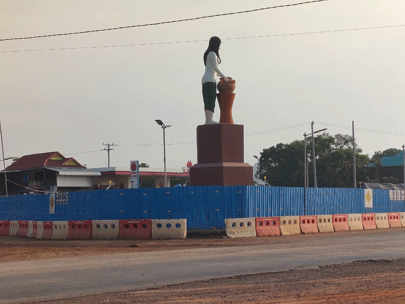 ខេត្តកំពង់ឆ្នាំងសមិទ្ធិផលថ្មីមួយទៀតដែលតាមរយៈអាជ្ញាធរខេត្តកំពង់ឆ្នាំងនិងក្រសួងសាធារណៈការបាននិងកំពុងកសាងរូបសំណាកស្រីស្រសស្រអែមលាក់ដែលធ្លាប់តែពួនធ្វើឆ្នាំងឥឡូវនេះបានចេញមុខឈរយ៉ាងស្រស់សង្ហានៅវង្វង់មូលផ្លូវបែកជាបួនស្ថិតក្នុងភូមិខ្វិត ឃុំពង្រ ស្រុករលាប្អៀរដើម្បី ទទួលស្វាគមន៍រក្សទាក់ភ្ញៀវទេសចរណ៍ជាតិនិងអន្តរជាតិដែលនេះគឺជាការអភិវឌ្ឍន៍ថ្មីស្រឡាងមួយទៀត លើវិស័យគមនាគមន៍ក្រោមការដឹកនាំដ៏ថ្លៃថ្លារបស់ប្រមុខរាជរដ្ឋាភិបាល មានសម្ដេចតេជោហ៊ុនសែ ន នាយករដ្ឋមន្ត្រីនៃព្រះរាជាណាច ក្រកម្ពុជា ។ អាជ្ញាធរខេត្តកំពង់ឆ្នាំងបានបញ្ជាក់អោយដឹងថា នារីស្រស់ស្រអែមដែលកំពុងឈរធ្វើឆ្នាំងនេះគឺជា អត្តសញ្ញាណរបស់ខេត្តកំពង់ឆ្នាំងដែលប្រជាកសិករភាគច្រើននៅក្នុងស្រុករលាប្អៀរ បានប្រកប មុខរបរធ្វើក្អមឆ្នាំង ដែលជាការអភិរក្សស្នាដៃមរបស់ដូនតាខ្មែរ ទុកឲ្យកូនចៅជំនាន់ក្រោយ ប្រកបមុខរបស់នេះបន្តទៀតដើម្បីផ្គត់ផ្គង់ជីវភាពរស់នៅប្រចាំថ្ងៃ ។ រូបសំណាកស្រីស្រស់ ធ្វើឆ្នាំងខាងលើនេះបានកសាងឡើងនៅចំណុចផ្លូវបំ បែកជាបួនជាប់ផ្លូវចូលទៅព្រលានយន្តហោះឃុំពង្រ ដែលកំពុងកសាងបានប្រមាណ៧៥ ភាគរយហើយ ។ ចំណែកផ្លូវថ្មីខាងលិចប៉ែកខាងត្បូងនៃរូបសំណាកនេះ គឺជាផ្លូវថ្មីមួយខ្សែទៀតមាន ប្រវែងប្រមាណជាង 10 គីឡូម៉ែត្រ ដែលប្រមុខរាជ រដ្ឋាភិបាលបានកំពុងឲ្យក្រសួងសា ធារណការកសាងផ្លូវវាងក្រុងមួយខ្សែបែកចេញពីចំណុចរូបសំណាកនេះទៅកាន់ចំណុចប្រសព្វ ផ្លូវចូលវត្តបាញ់ឆ្គោលស្ថិតឃុំជ្រៃបាក់ស្រុករលាប្អៀរ ដើម្បីធ្វើចរាចរណ៍វៀងទីក្រុងកំពង់ឆ្នាំង បញ្ចៀសការធ្វើចរាចរណ៍កុំឲ្យកកស្ទះ ក្នុងពេលផ្លូវជាតិលេខ៥កសាងរួចរាល់ជា ស្ថាពរនៅក្នុងឆ្នាំខាងមុខនេះ។ដោយឡែកនៅផ្លូវប្រសព្វមុខផ្លូវចូលវត្តបាញ់ឆ្គោលខាងលើនេះតាមរយៈអាជ្ញាធរខេត្ត ក្រសួងសាធារណៈការក៏បានកសាងរូប សំណាកឆ្នាំងមាសដ៏ធំមួយផងដែរ ដើម្បីជានិមិត្តសញ្ញាបញ្ជាក់ថា មកដល់ចំណុចនេះគឺជាទឹកដីចុះណាស់នៃរឿងព្រេង ពីបូរាណរិទ្ធិសែន នាងកង្រី ទឹកដីខេត្តកំពង់ឆ្នាំង ។
