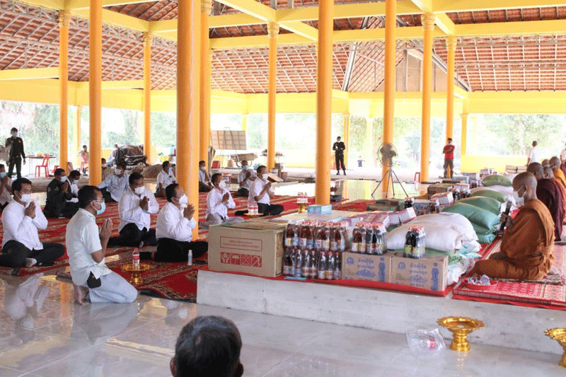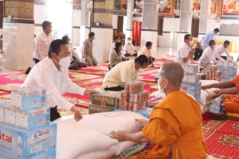 (ខេត្តកំពង់ធំ): នាថ្ងៃទី ១២ ខែមេសា ឆ្នាំ២០២១ នៅក្នុងដំណាក់កាលកូវីដ១៩ នេះ ឯកឧត្តម សុខ លូ អភិបាលខេត្តកំពង់ធំ និងសហការី បាននាំយកគ្រឿងឧបភោគបរិភោគ និងថវិកាមួយចំនួន ប្រគេនដល់ព្រះសង្ឃគង់នៅវត្តដែលខ្វះខាតចង្ហាន់ ស្ថិតនៅក្នុងស្រុកតាំងគោក ៥វត្ត ស្រុកបារាយណ៍ ៤វត្ត ស្រុកសន្ទុក ៦វត្តស្រុកប្រាសាទបល្ល័ង្គ ៣វត្ត និងក្រុងស្ទឹងសែន ២វត្ត សរុប ២០វត្ត ស្មើននឹង ៣៣៧អង្គ។ ឆ្លៀតក្នុងឱកាសនោះ ឯកឧត្តម សុខ លូ អភិបាលខេត្តកំពង់ធំ ក៏បានអំពាវនាវដល់ បងប្អូនប្រជាពលរដ្ឋនិងពុទ្ធបរិស័ទទាំងអស់ នៅក្នុងឱកាសពិធីបុណ្យចូលឆ្នាំថ្មី ប្រពៃណីជាតិ ខ្មែរខាងមុខនេះ ប្រសិនបើមានគោលបំណងយកចង្ហាន់មកប្រគេនព្រះសង្ឃ ឬធ្វើពិធីបង្សុកូល សូមកាត់បន្ថយអ្នកចូលរួម ត្រូវពាក់ម៉ាសការពារ រក្សាគម្លាតសុវត្ថិភាពបុគ្គលចាប់ពី ១.៥ម៉ែត្រឡើងទៅ ត្រូវយកទឹកអាកល់ ឬជែល សម្រាប់លាងដៃ ជាប់ខ្លួនជានិច្ច ជាពិសេសសូមចូលរួមគោរពតាមវិធានការរបស់រាជរដ្ឋាភិបាល និងក្រសួងសុខាភិបាល “បីការពារ បីកុំ និងពីរចូលរួម” ឲ្យបានខ្ជាប់ខ្ជួន ប្រសិនបើមិនចាំបាច់សូមកុំចេញក្រៅផ្ទះឲ្យសោះ ដើម្បីការពារអាយុជីវិតយើង ក្រុមគ្រួសារយើង ចៀសផុតពីជំងឺដ៏កាចសាហាវមួយនេះ។ សូមបញ្ជាក់ផងដែរថា វត្តដែលខ្វះខាតក្នុងខេត្តកំពង់ធំមានចំនួន ៤០វត្ត ក្នុងចំណោម ៩ក្រុងស្រុក ក្នុងនោះរដ្ឋបាលខេត្តកំពង់ធំបានប្រគេនដល់ព្រះសង្ឃមានចំនួន ២០វត្ត មានព្រះសង្ឃសរុប ៣៣៧អង្គ ក្នុងស្រុកចំនួន ៥ស្រុក រួមមាន:១. ស្រុកតាំងគោកមានចំនួន ៥វត្ត រួមមាន : វត្តគុហ៍ព្រះធាតុ មានព្រះសង្ឃ ១៩អង្គ វត្តទ្រៀល មានព្រះសង្ឃ ៤៥អង្គ វត្តគ្រើល មានព្រះសង្ឃ ១៨អង្គ វត្តទួលអណ្ដែត មានព្រះសង្ឃ ១៦អង្គ និងវត្តគីរីអណ្ដែត មានព្រះសង្ឃ ៥ អង្គ ២. ស្រុកបារាយណ៍មានវត្តចំនួន ៤វត្ត រួមមាន: វត្តភ្នំដា មានព្រះសង្ឃចំនួន ១៣អង្គ វត្តលឿក គ្មានព្រះសង្ឃ ១៧ អង្គ វត្តកងមាស មានព្រះសង្ឃ ៣៤អង្គ និងវត្តត្នោតជុំ មានព្រះសង្ឃ ២១អង្គ ៣. ស្រុកសន្ទុកមានវត្តចំនួន ៦ វត្ត រួមមាន វត្តសុធីរោ រតនារាម មានព្រះសង្ឃចំនួន ១៤អង្គ វត្តចមចុងគិរី មានព្រះសង្ឃចំនួន ១២អង្គ វត្តត្រៃសិក្ខារាម មានព្រះសង្ឃចំនួន ៣១អង្គ វត្តអាស្រមភ្នំស្រួច មានព្រះសង្ឃចំនួន ១៧ អង្គ វត្តអូរសោមរង្សី មានព្រះសង្ឃចំនួន ១០អង្គ វត្តអាស្រមពោធ៍រង្សី គិរីសត្ថារាម មានព្រះសង្ឃចំនួន ៩អង្គ ៤. ក្រុងស្ទឹងសែនមានវត្តចំនួន ២វត្ត រួមមាន វត្តសែនសិរី មានព្រះសង្ឃចំនួន ១១អង្គ វត្តទួលសត្ថារាម មានព្រះសង្ឃចំនួន ៩អង្គ ៥. ស្រុកប្រាសាទបល័ង្ក មានវត្តចំនួន ៣វត្ត រួមមាន អាស្រមចន្ទវ័ន មានព្រះសង្ឃចំនួន ៩អង្គ គគីសួស្ដី (គេន្ទាក) មានព្រះសង្ឃ ១៣អង្គ និងវត្តកែវមុនីបារមី មានព្រះសង្ឃចំនួ