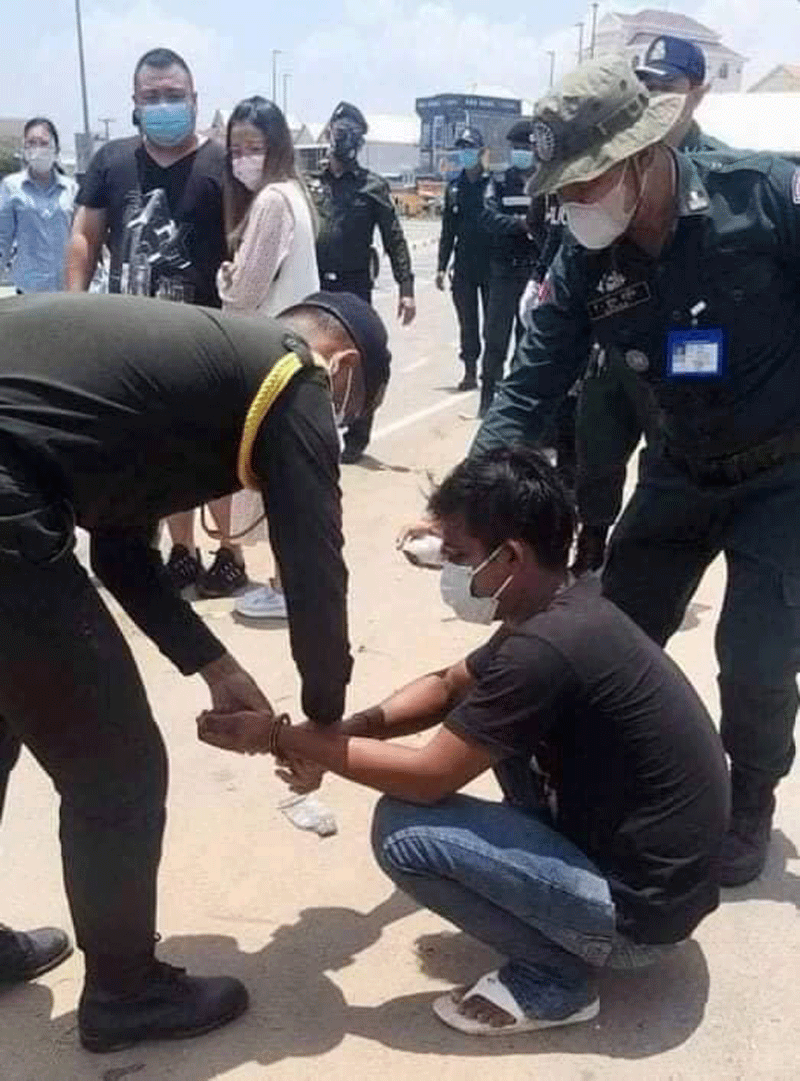 កណ្តាល ៖ បុរសអ្នកបើកបរ រថយន្ត យី ឌុ បពាក់ ស្លាក លេខ« ខម »មួយ គ្រឿង ត្រូវ សមត្ថកិច្ច កងរាជអាវុធហត្ថចាប់ វ៉ៃ ខ្នោះ ក្រោយ ឆែកឆេរ រក ឃើញ មាន បង្កប់ ជនជាតិ ចិនប្រុស-ស្រី ២ នាក់នៅ ក្នុង រថយន្ត ដែលនេះជាសកម្មភាពប្រឆាំងនឹងបម្រាមរបស់រាជរដ្ឋាភិបាលដែលកំពុង ហាមឆ្លងខេត្តមួយទៅខេត្តមួយដើម្បីបង្ការ ជំងឺឆ្លង កូ វី ដ -១៩ ។