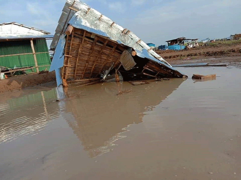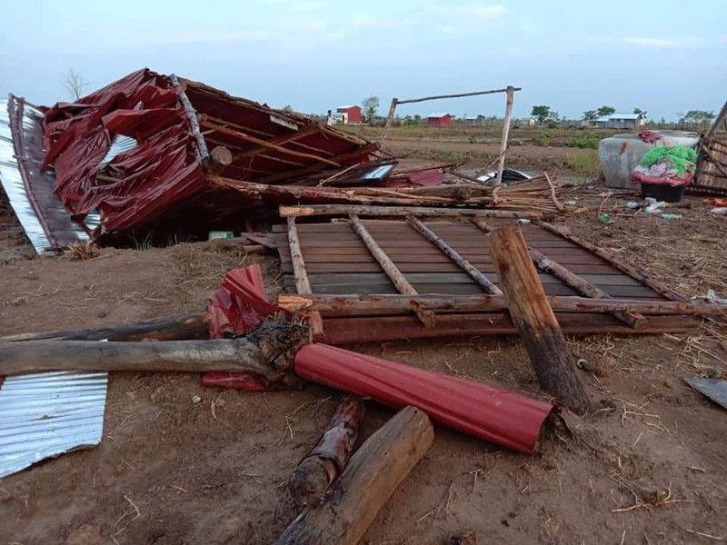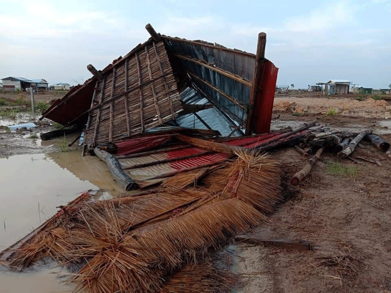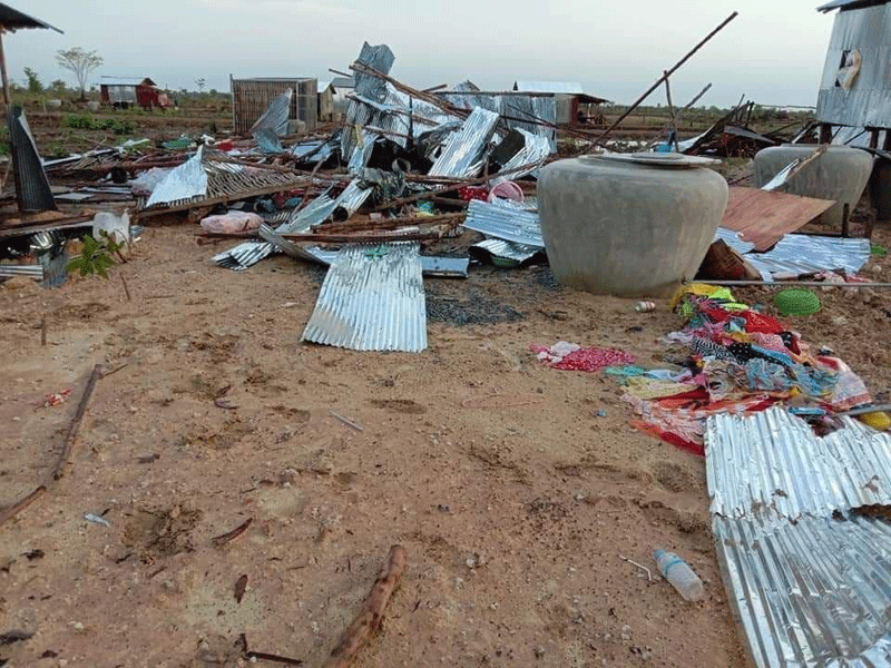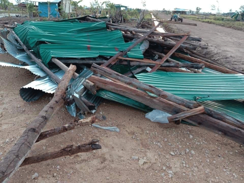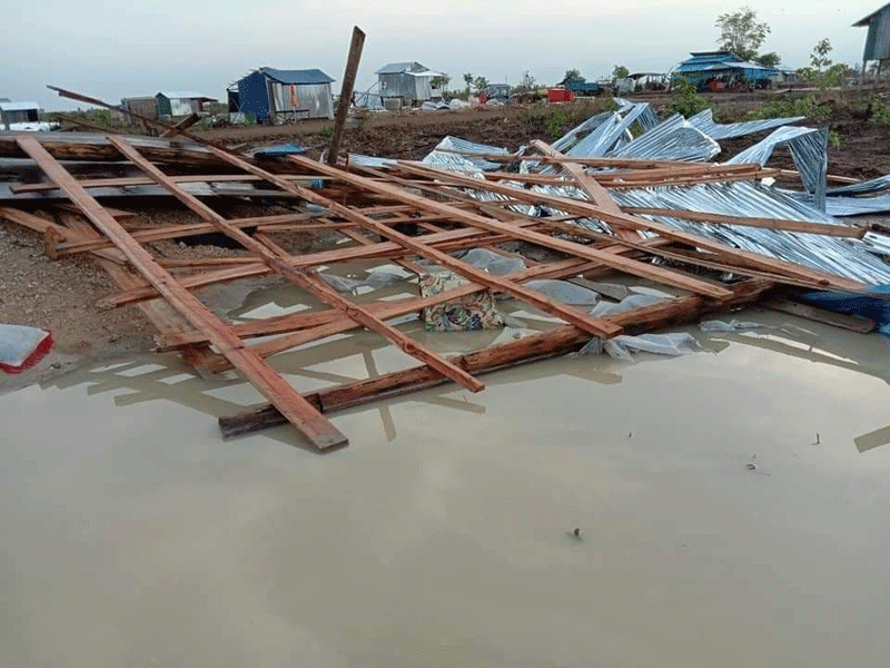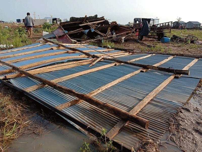 (ខេត្តបន្ទាយមានជ័យ)៖ ផ្ទះប្រជាពលរដ្ឋ២៣ខ្នងបានរងការខូចខាត ដោយសារភ្លៀងលាយ ខ្យល់កន្ត្រាក់វាយប្រហារកាលពីល្ងាចថ្ងៃទី១២ខែមេសាឆ្នាំ២០២១ នៅចំណុចបឹងជង្រុក តេជោឈ្នះឈ្នះ ឃុំទូលពង្រ ស្រុកម៉ាឡៃ។