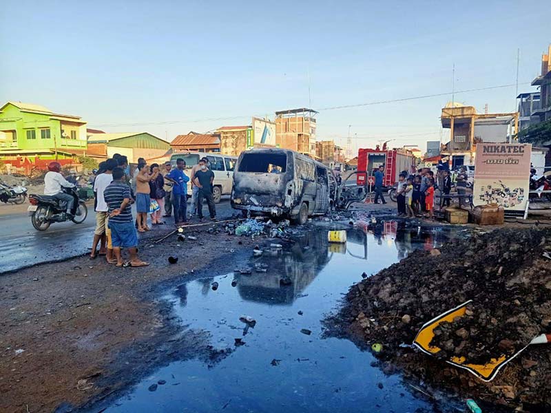 សមត្ថកិច្ចបានឲ្យដឹងថា រថយន្តខាងលើនេះម៉ាកសាំយ៉ុង ពាក់ស្លាកលេខភ្នំពេញ២AA -០១៤៤ បើកបរដោយឈ្មោះ ង៉ែត ទិត្យ ភេទប្រុស អាយុ៣០ឆ្នាំ មានដឹកធុងថ្នាំពណ៌សម្រាប់លាបផ្ទះ បានធ្វើដំណើរក្នុងទិសដៅពីកើត ទៅលិច ។
