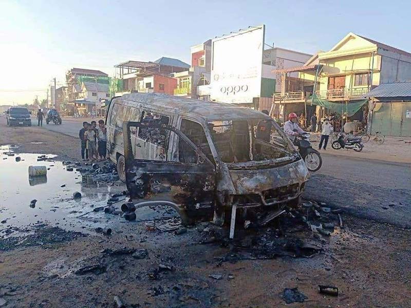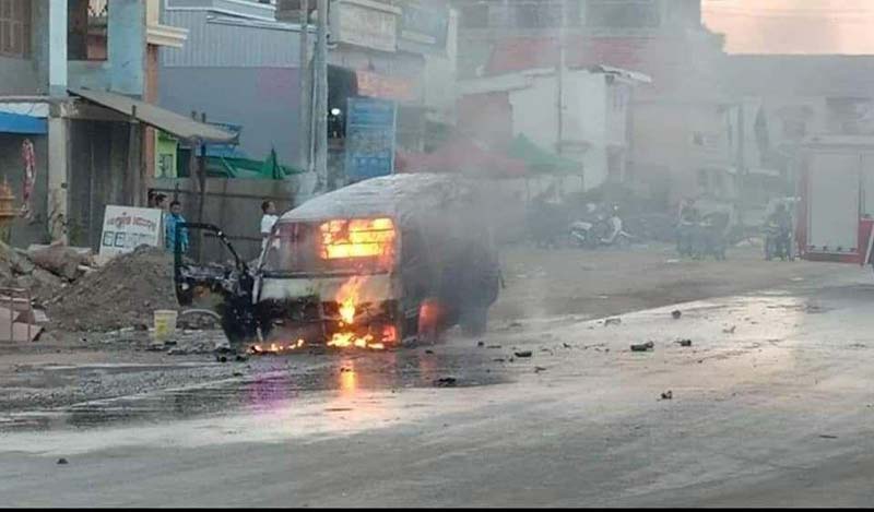 នៅពេលបើកបរមកដល់ចំណុចកើតហេតុ ស្រាប់តែរថយន្តនេះបានឆ្លងចរន្តបណ្តាលអោយឆេះហុយផ្សែងទ្រលោមបង្ករការភ្ញាក់ផ្អើលដល់ប្រជាពលរដ្ឋនិងសមត្ថកិច្ចនគរបាលស្រុកបរិបូរណ៍យករថយន្តពន្លត់អគ្គិភ័យចេញជួយអន្តរាគមន៍ពន្លត់ភ្លាមៗផងដែរ ។