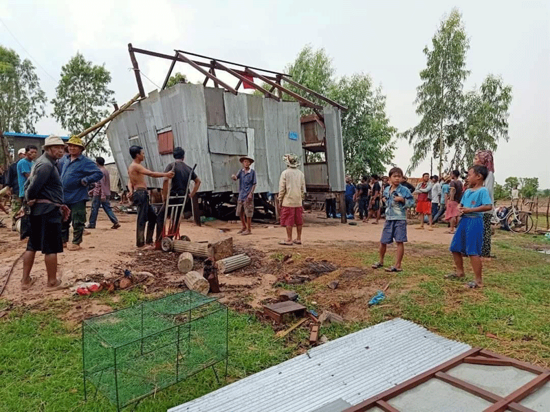 ខេត្តកំពង់ឆ្នាំង:ភ្លៀងលាយឡំនិងផ្គរន្ទះខ្យល់កន្ត្រាក់បណ្តាលអោយផ្ទះប្រជាពលរដ្ឋ២ខ្នងបាក់ដួលរលំ ករណីខាងលើនេះបានកើតឡើងនៅវេលាម៉ោង៤ល្ងាចថ្ងៃទី១៨មេសា២០២១ម្សិលមិញថ្ងៃទី ១៨ ខែមេសា ឆ្នាំ ២០២១ នៅចំណុចភូមិក្នុង ឃុំស្វាយរំពារ ស្រុកកំពង់លែង ខេត្តកំពង់ឆ្នាំងកើតមាន ករណីខ្យល់កន្ត្រាក់បណ្តាលអោយរលំបាក់ផ្ទះរបស់ប្រជាពលរដ្ឋ ចំនួន០២ខ្នងមានម្ចាស់១,ឈ្មោះ ជន់ រ៉េន ដែលផ្ទះមានទំហំ ៥ម×៧ម ដំបូលប្រក់ស័ង្កសី ជញ្ជាំងបាំង ស័ង្កសី រនាបក្រាលក្តា បណ្តាល អោយខូចខាតផ្ទះអស់ទាំងស្រុង និងសម្ភារ:អស់មួយចំនួន ។២,ឈ្មោះ សូត្រ ផល ភេទ ស្រី អាយុ ៤៧ ឆ្នាំស្តី្រមេម៉ាយដែលផ្ទះមានទំហំ ៤ម×៥ម ដំបូលប្រក់ស័ង្កសី ជញ្ជាំងបាំងស័ង្កសី រនាបក្រាលក្តា បណ្តាលអោយខូចខាតផ្ទះអស់មធ្យម និងសម្ភារ:អស់មួយចំនួនម្ចាស់ផ្ទះទាំង២រសនៅក្នុង ភូម៨ឃុំស្រុកខាងលើ ។ សមត្ថកិច្ចនគបាលមូលដ្ឋានបានអោយដឹងថានៅមុនពេល កើតហេតុភ្លៀង មួយមលាយឡំនិងខ្យល់កន្ត្រាក់បក់ចំផ្ទះទាំង២បណ្តាលអោយដួលរលំបាក់គ្រាដែលម្ចាស់ផ្ទះមិននៅករណីខាងលើនេះបណ្តាលអោយខូចខាតផ្ទះទាំង២រួមនិងសម្ភារក្នុងផ្ទះផងដែរ ៕អ្នកស្រីសានផល្លា