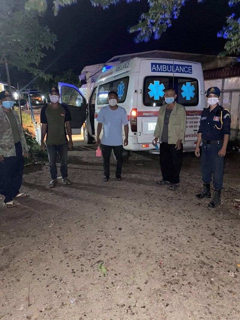 ខេត្តបន្ទាយមានជ័យ៖ អាជ្ញាធរភូមិមិត្តភាពសង្កាត់ក្រុងប៉ោយប៉ែត និងមន្ត្រីសុខាភិបាលបានយក មនុស្ស២នាក់ទៅធ្វើចត្តាឡីស័កខណ:ជួលរថយន្តពេទ្យ(សង្រ្គោះបន្ទាន់)ជិះមកផ្ទះនៅយប់ថ្ងៃទី១៨ខែមេសាឆ្នាំ២០២១នេះ ពីរាជធានីភ្នំពេញមកក្រុងប៉ោយប៉ែត ខេត្តបន្ទាយមានជ័យ។