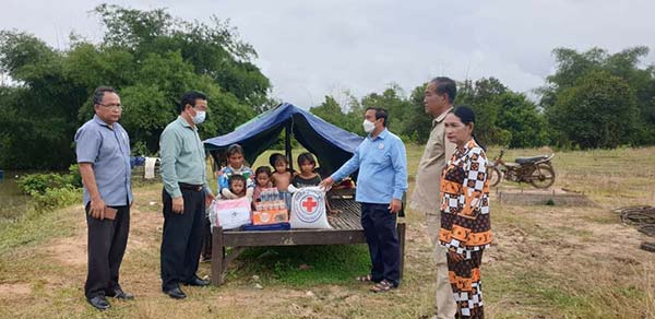 គ្រួសាររងគ្រោះដោយភ្លើងឆេះផ្ទះ ទទួលបានអំណោយពីសាខាកាកបាទក្រហមកម្ពុជាខេត្តកណ្តាល