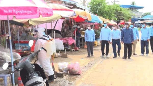 ឯកឧត្តមរដ្ឋលេខាធិការក្រសួងការពារជាតិ និងអ្នកតំណាងរាស្ត្រ ចុះពិនិត្យមើលការបាញ់ថ្នាំសម្លាប់មេរោគកូវីដ១៩ នៅផ្សារប៉ាងរលឹម និងផ្សារអូរច្រាកណ្តាល ក្នុងក្រុងប៉ៃលិន
