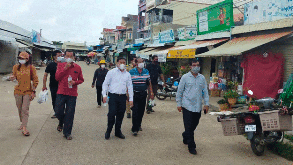 ឯកឧត្តម នាយឧត្តមសេនីយ៍ អ៊ី ឈាន រដ្ឋលេខាធិការក្រសួងការពារជាតិ ចុះសំណេះសំណាល និងសួរសុខទុក្ខអាជីវករនៅផ្សារសាមគ្គី ក្រុងប៉ៃលិន