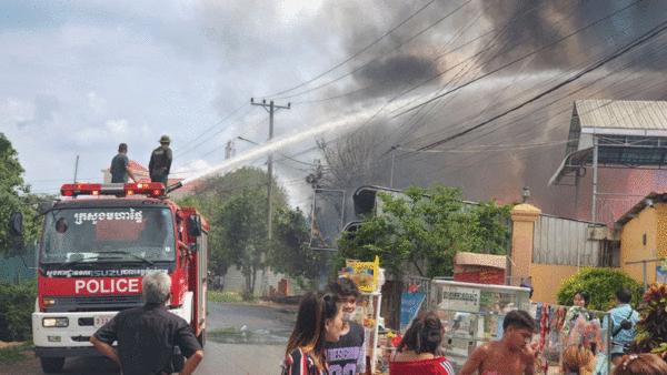ផ្ទះឈើ២ខ្នង នៅក្នុងក្រងកំពង់ចាម ត្រូវ អគ្គីភ័យឆាបឆេះទាំងស្រុង ដោយម្ចាស់ផ្ទះអះអាងថា មកពីទុស្សេខ្សែភ្លើង