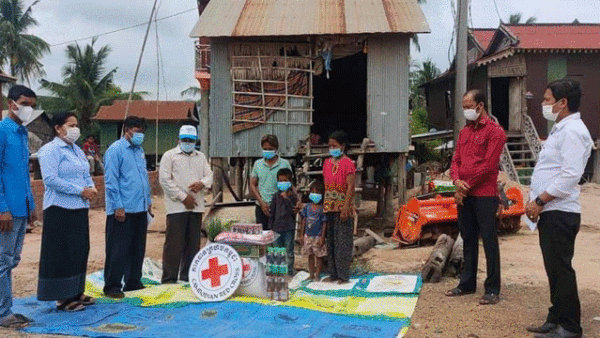 គ្រឿងឧបភោគបរិភោគដែលជាអំណោយរបស់អនុសាខាកាកបាទក្រហមស្រុកកំពង់លែងនាំយកអំណោយប្រគល់ជូនប្រជាពលរដ្ឋមានជំងឺប្រចាំកាយ២គ្រួសារនៅឃុំច្រណូក
