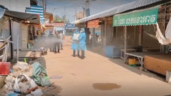 ក្រុមការងារនៃមន្ទីរសុខាភិបាលខេត្តកំ ពង់ឆ្នាំងចុះបាញ់ថ្នាំសម្លាប់មេរោគក្នុងផ្សារព្រៃខ្មែរ បន្ទាប់ពីបិទរយៈពេល 4 ថ្ងៃមក