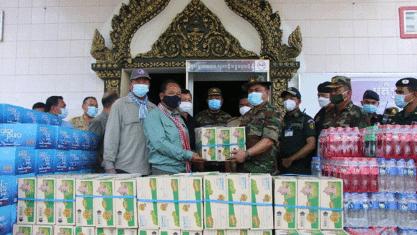 ប្រធានគណៈបញ្ជាការឯកភាពស្រុកឆែប ចុះប្រគល់គ្រឿងឧបភោគ បរិភោគដល់កម្លាំងប្រចាំការត្រួតពិនិត្យអ្នកធ្វើដំណើរឆ្លងខេត្ត
