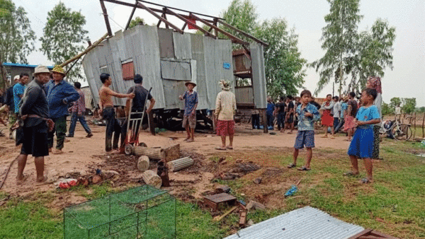 ភ្លៀងលាយឡំនិងផ្គរន្ទះខ្យល់កន្ត្រាក់បណ្តាលអោយផ្ទះប្រជាពលរដ្ឋបាក់ដួលរលំ