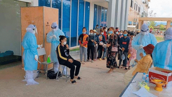 កម្មការិនីរោងចក្រកាត់ដេរហីរ៉ាយហ្សិនខេមបូឌាដែលប៉ះពាល់ដោយប្រយោលជាមួយស្ត្រីជាម្តាយនិងកូនត្រូវបានអាជ្ញាធនិងក្រុមគ្រូពេទ្យចុះធ្វើការពិនិត្យនិងយកសំណាក