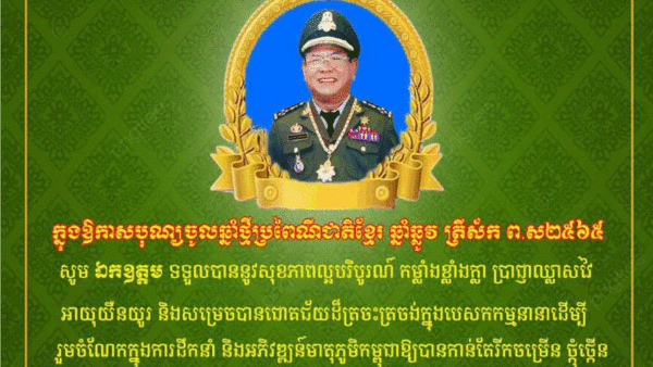 ឯកឧត្តម ឧត្តមសេនីយ៍ទោ ជូ តុងអាន មេបញ្ជាការរងកងពលធំអន្តរាគមន៍លេខ៣ ផ្ញើរលិខិតជូនពរដល់ ឯកឧត្តម នាយឧត្តមសេនីយ៍ផ្កាយមាសបួន ប៉ុល សារឿន ទេសរដ្ឋមន្ត្រីទទួលបន្ទុកបេសកកម្មពិសេស ក្នុងឱកាស បុណ្យចូលឆ្នាំថ្មី ប្រពៃណីជាតិខ្មែរ