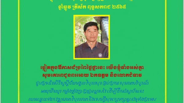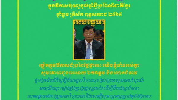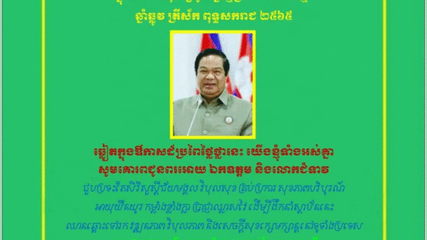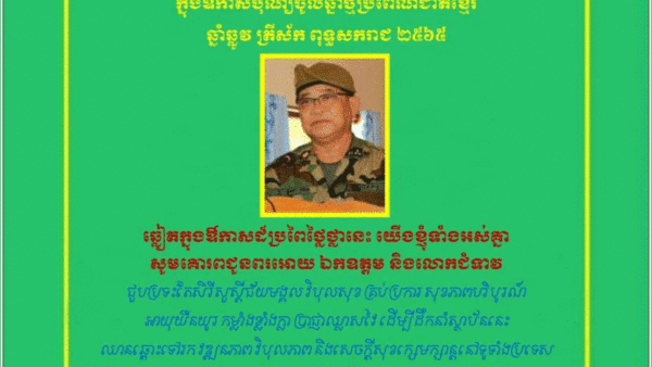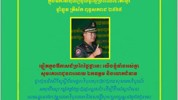 ឯកឧត្តម ឧត្តមសេនីយ៍ទោ ច័ន្ទ សុភ័ក្ត្រា មេបញ្ជាការតំបន់ប្រតិបត្តការសឹករងខេត្តព្រះវិហារ ផ្ញើរលិខិតជូន ឯកឧត្តម ប្រាក់ សុវណ្ណអភិបាលនៃគណៈអភិបាលខេត្តនិងជាប្រធានគណៈបញ្ជាការ ឯកភាពខេត្តព្រះវិហារ ក្នុងឱកាស បុណ្យចូលឆ្នាំថ្មី ប្រពៃណីជាតិ