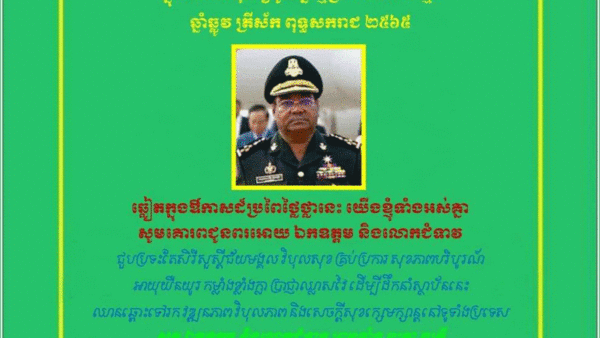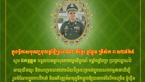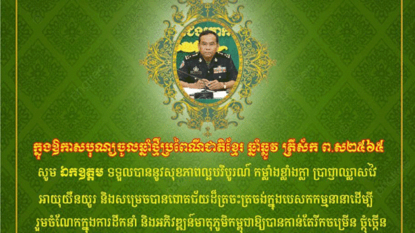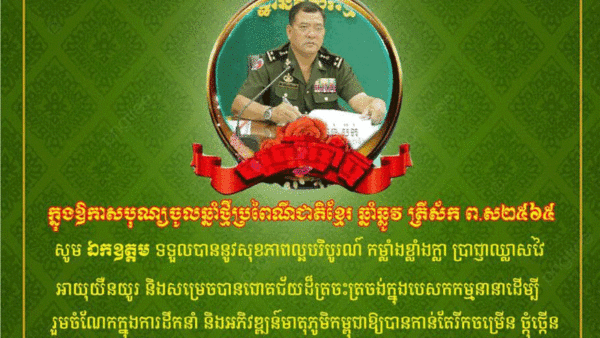 ឯកឧត្តម ឧត្តមសេនីយ៍ទោ ច័ន្ទ សុភ័ក្ត្រា មេបញ្ជាការតំបន់ប្រតិបត្តការសឹករងខេត្តព្រះវិហារ ផ្ញើរលិខិតជូន ឯកឧត្តម នាយឧត្តមសេនីយ៍កិតិបណ្ឌិត ហ៊ីង ប៊ុនហៀង អគ្គមេបញ្ជាការរង មេបញ្ជាការបញ្ជាការដ្ឋានអង្គរក្សក្នុងឱកាស បុណ្យចូលឆ្នាំថ្មី ប្រពៃណីជាតិខ្មែរ