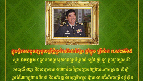 ឯកឧត្តម ឧត្តមសេនីយ៍ទោ ជូ តុងអាន មេបញ្ជាការរងកងពលធំអន្តរាគមន៍លេខ៣ផ្ញើរលិខិតជូន សម្តេចពិជ័យសេនា ទៀ បាញ់ ឧបនាយករដ្ឋមន្ត្រីក្រសួងការពារជាតិក្នុងឱកាសបុណ្យចូលឆ្នាំថ្មី ប្រពៃណីជាតិ