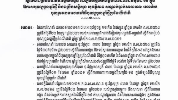 រដ្ឋបាលខេត្តកំពង់ឆ្នាំង ដាក់ចេញវិធានការដើម្បីទប់ស្កាត់ការឆ្លងរាលដាលជំងឺកូវីដ១៩ ក្នុងឱកាសបុណ្យចូលឆ្នាំថ្មីប្រពៃណីជាតិនេះ។