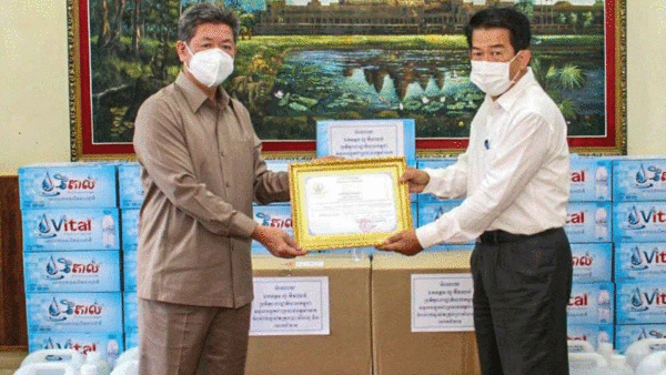 អភិបាលខេត្តកំពង់ចាម ទទួល អំណោយ ជា សម្ភារៈ ស្បៀងអាហារ និង ថវិកា ពី សប្បុរសជន ដែល បាន ចូលរួម ប្រយុទ្ធ ប្រឆាំង នឹង ជំងឺ កូវីដ -១៩