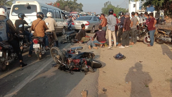 ម៉ូតូម៉ាកWinnerមិនប្រកាន់ស្តាំត្រូវម៉ូតូមួយគ្រឿងទៀតបុករងរបួសធ្ងន់និងស្រាលនៅស្រុកស្វាយទាប